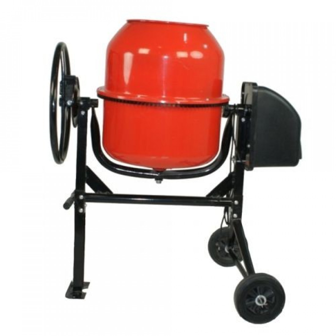 Електромотор на 550 Вт, для підключення потрібен спеціальний одиночний подовжувач. Тип бетономішалки - вінцева, сам вінець виготовлений з чавуну і при належному догляді є великий термін. Об'єм бака - 125 літрів, але номінально можна замішувати до 95 літрів суміші. Розміри апарату – довжина – 720 мм, ширина 380 мм, висота – 820 мм.