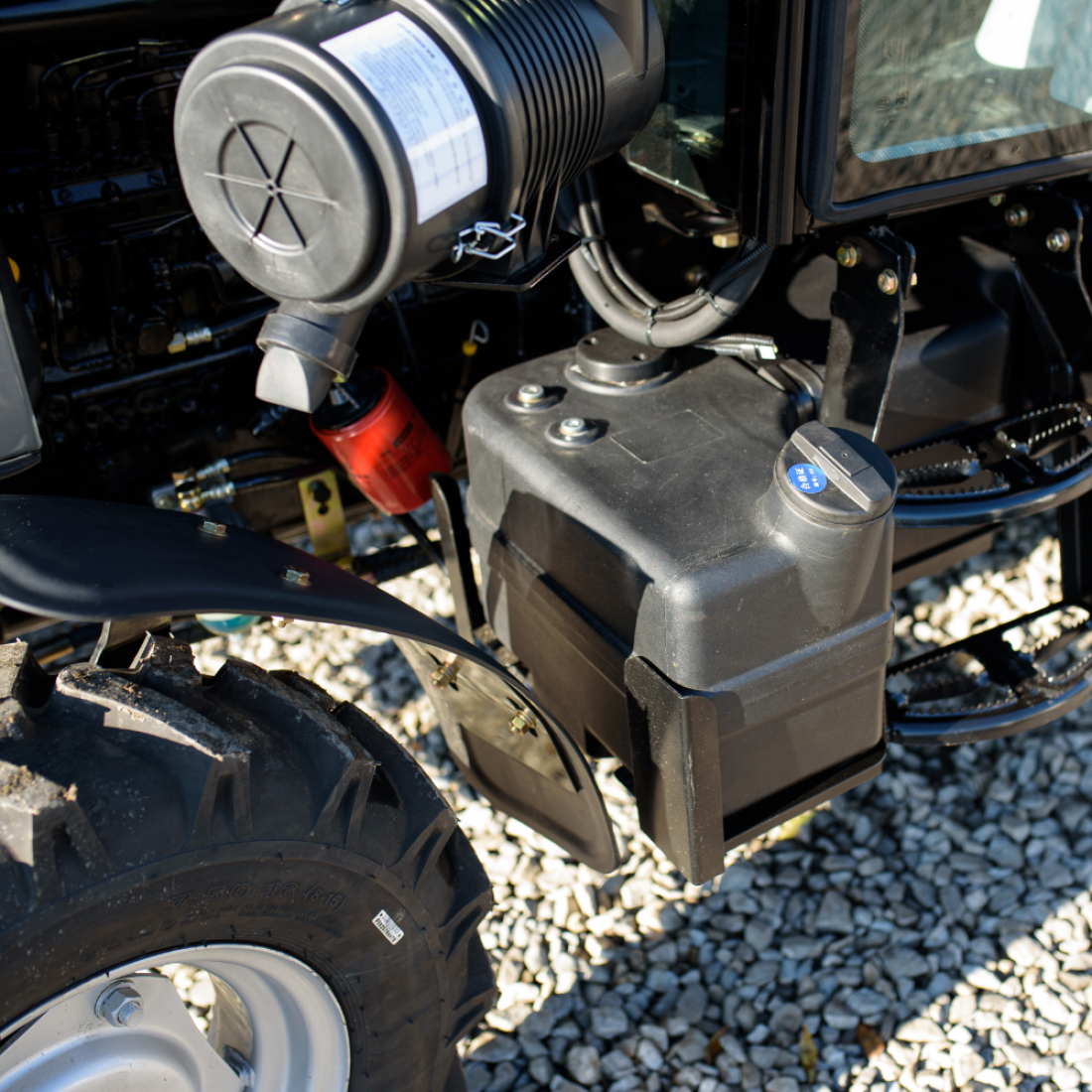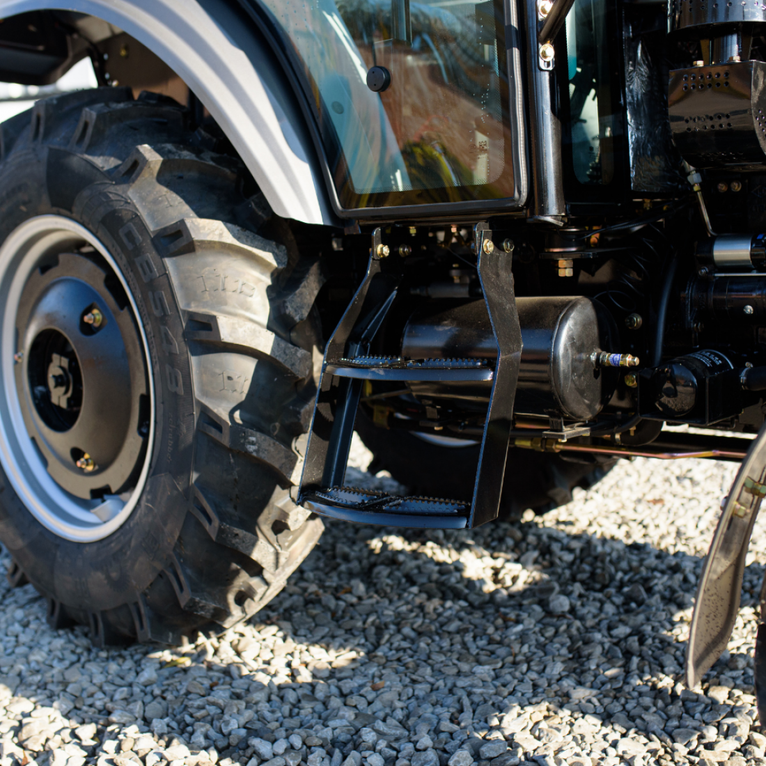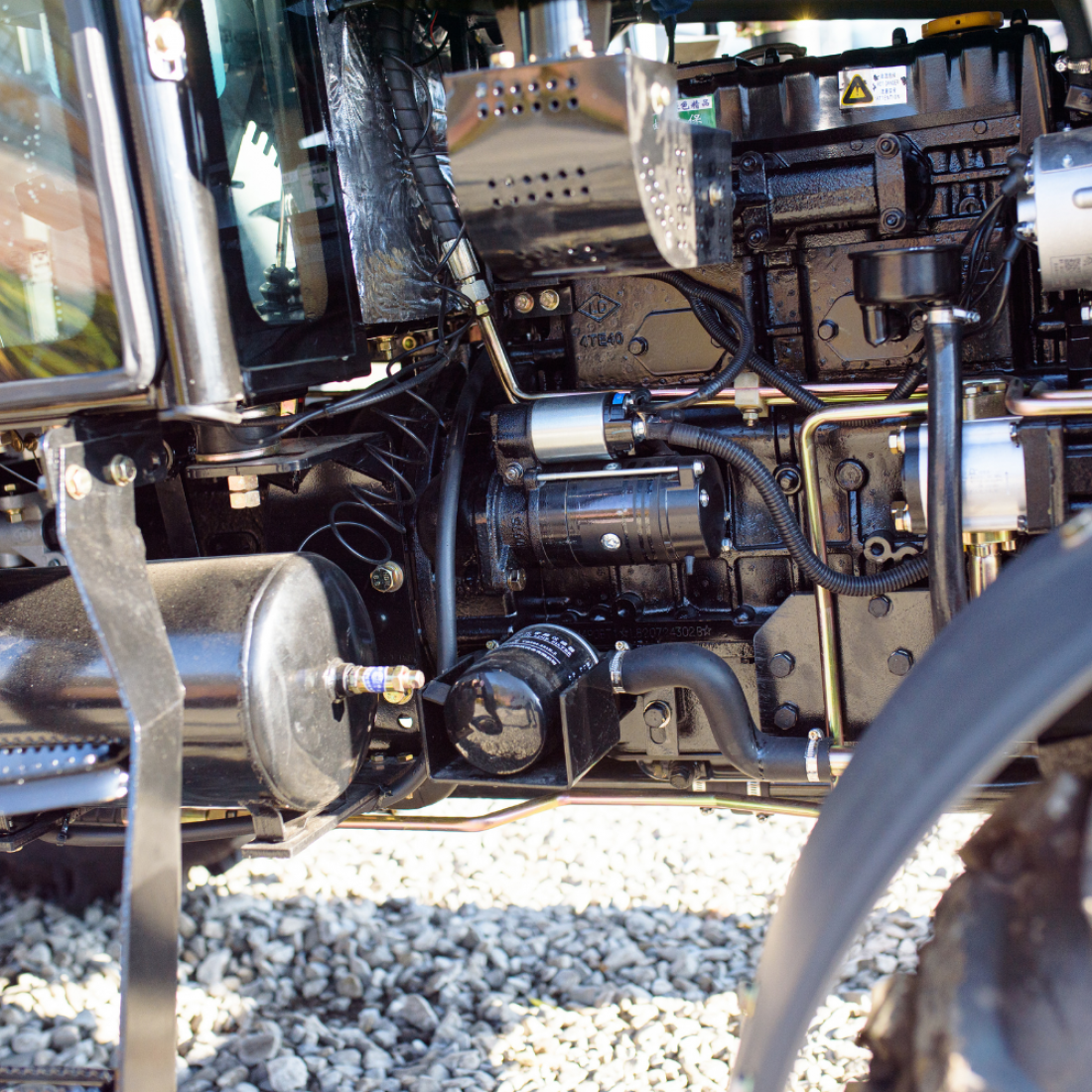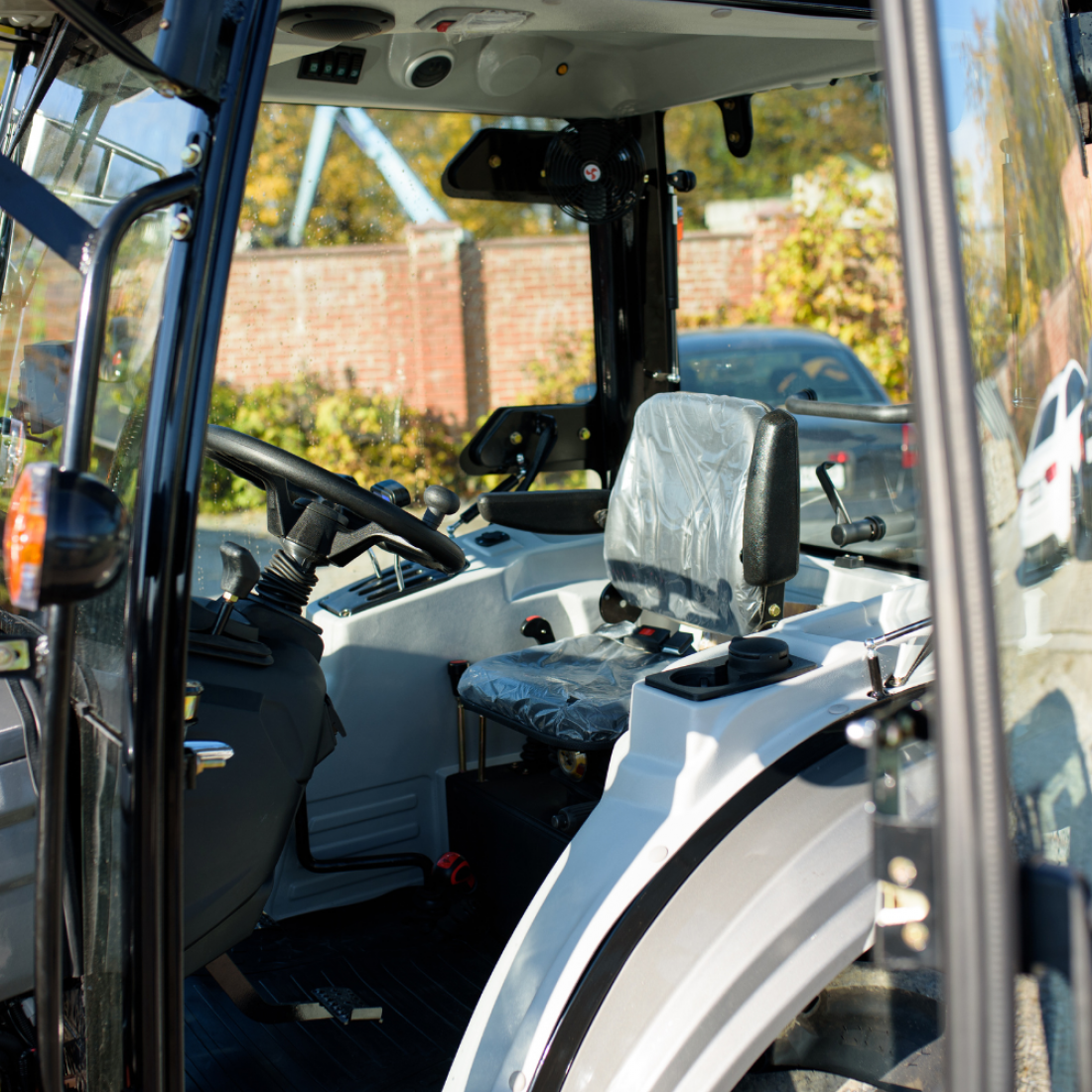 Наш трактор оснащений надійним шасі, яке готове до роботи у будь-яких умовах. З колісною формулою 4x4 він забезпечує відмінне зчеплення з поверхнею навіть на нерівних ділянках. Завдяки гідрооб'ємному рульовому управлінню та формулі перемикання передач (4+4)х2, керування трактором легке та зручне. А кабіна з вентиляцією, опаленням та оглядом 360° забезпечує комфортне та безпечне робоче місце для вас у будь-яку погоду.
