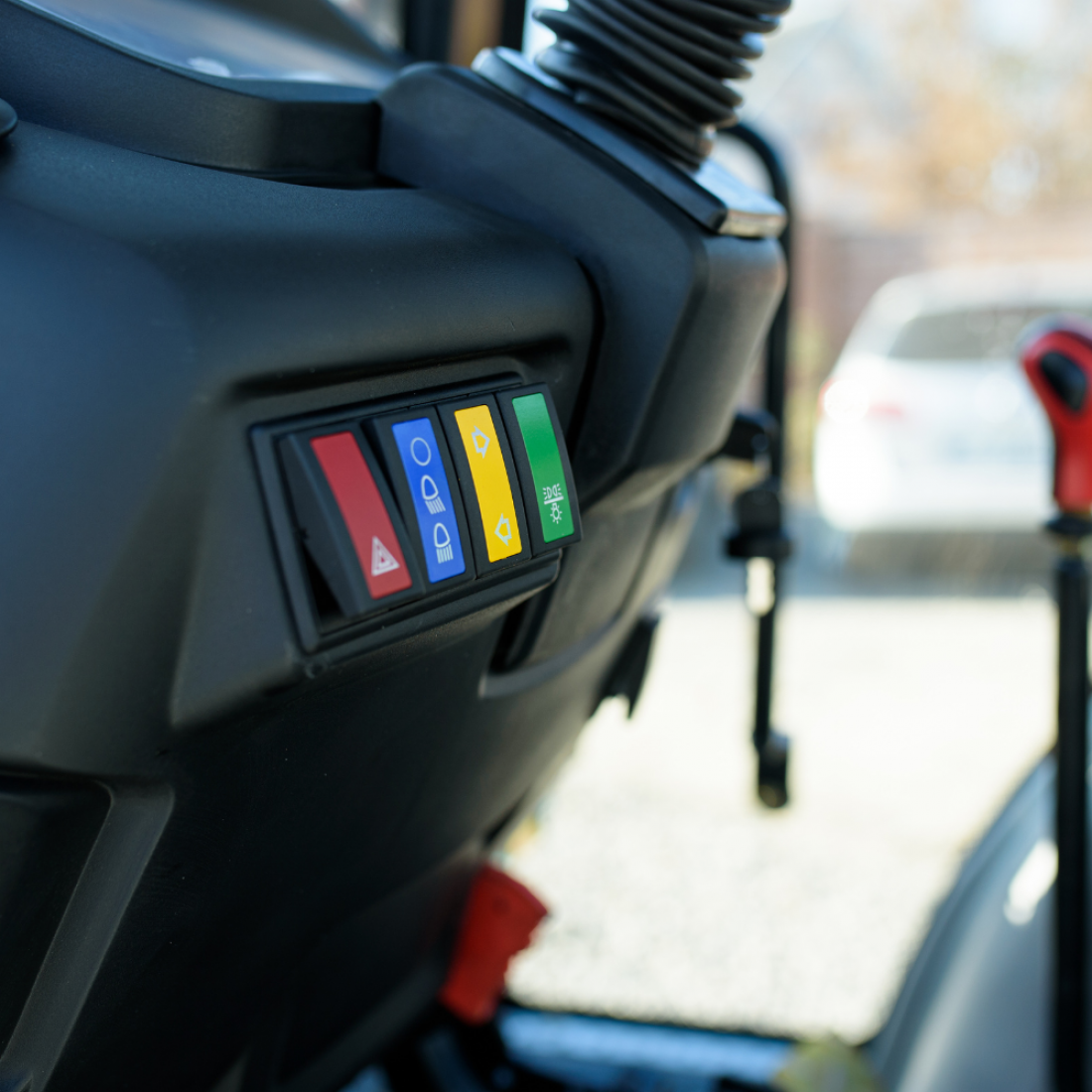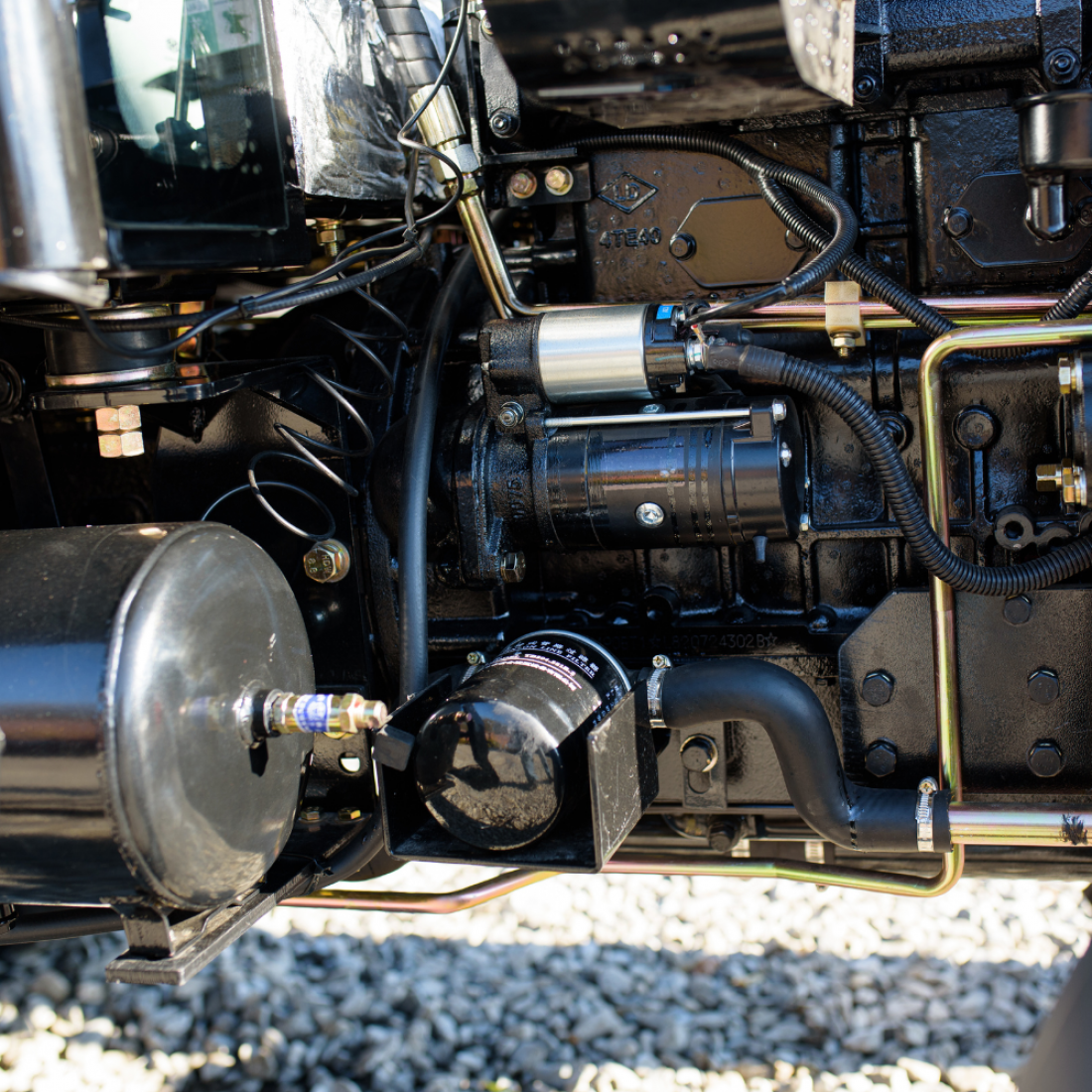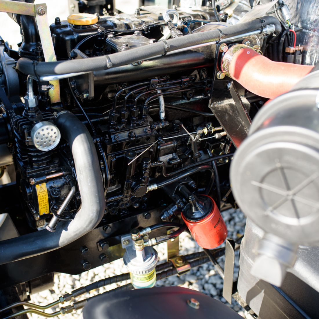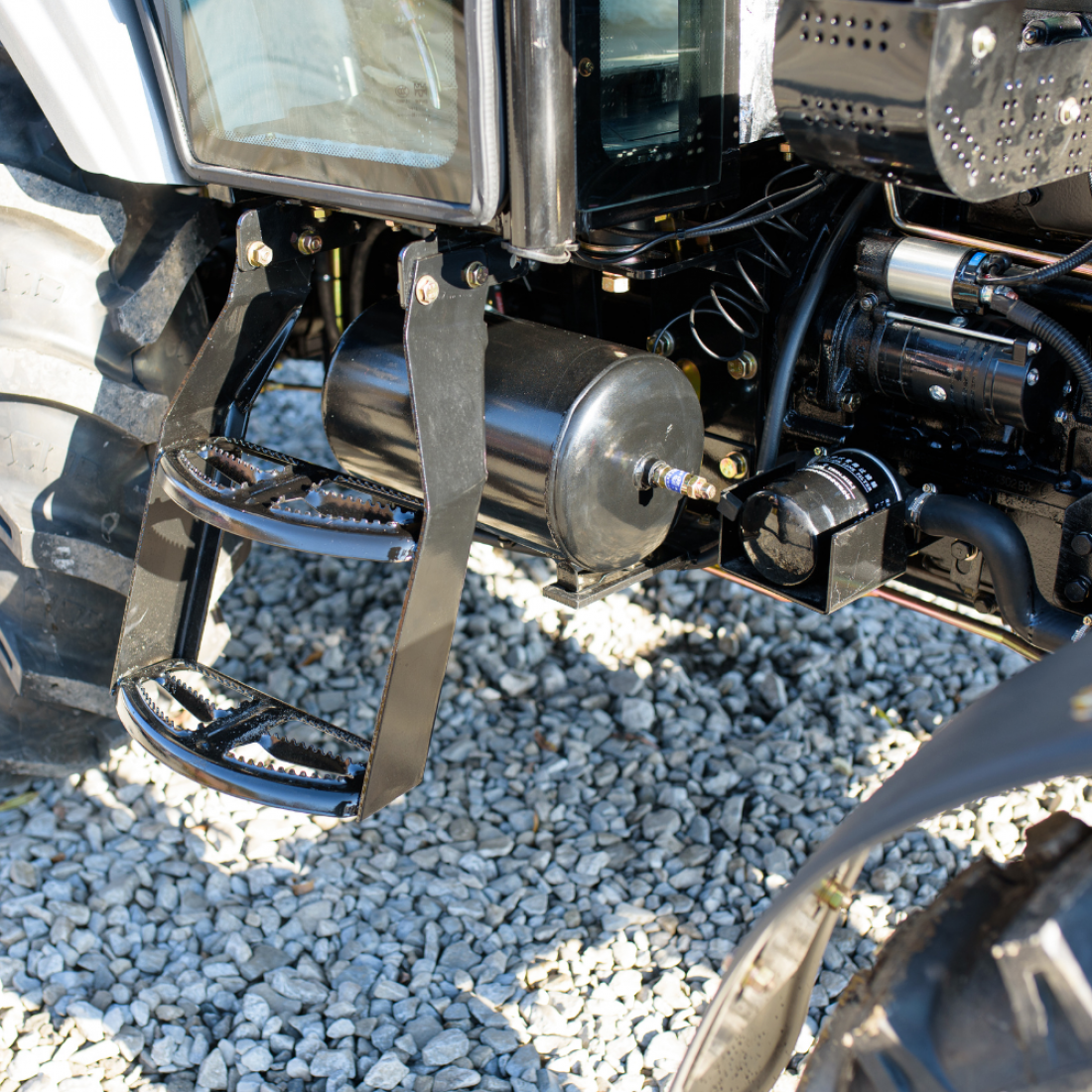 Наш трактор оснащений надійним шасі, яке готове до роботи у будь-яких умовах. З колісною формулою 4x4 він забезпечує відмінне зчеплення з поверхнею навіть на нерівних ділянках. Завдяки гідрооб'ємному рульовому управлінню та формулі перемикання передач (4+4)х2, керування трактором легке та зручне. А кабіна з вентиляцією, опаленням та оглядом 360° забезпечує комфортне та безпечне робоче місце для вас у будь-яку погоду.