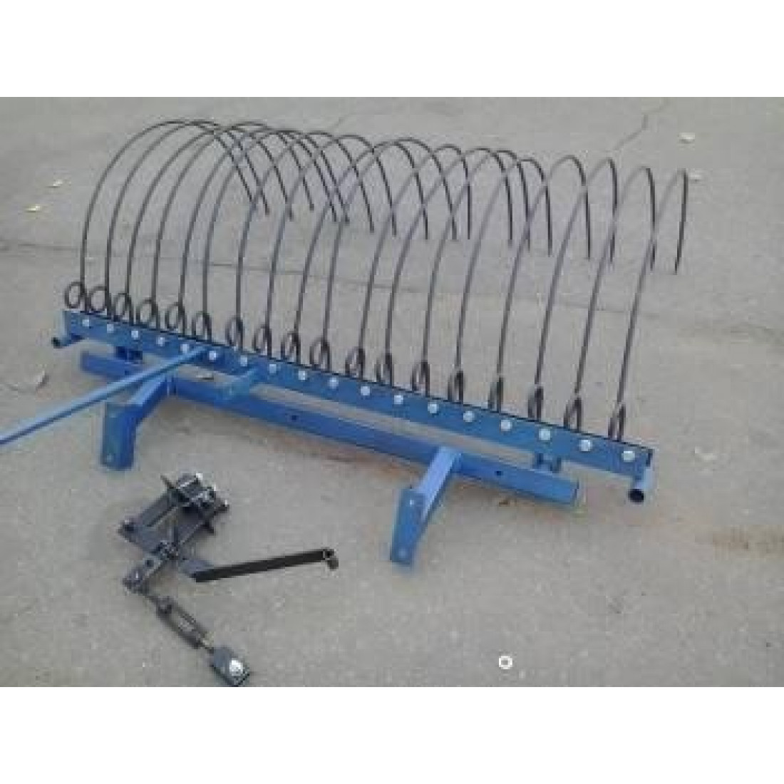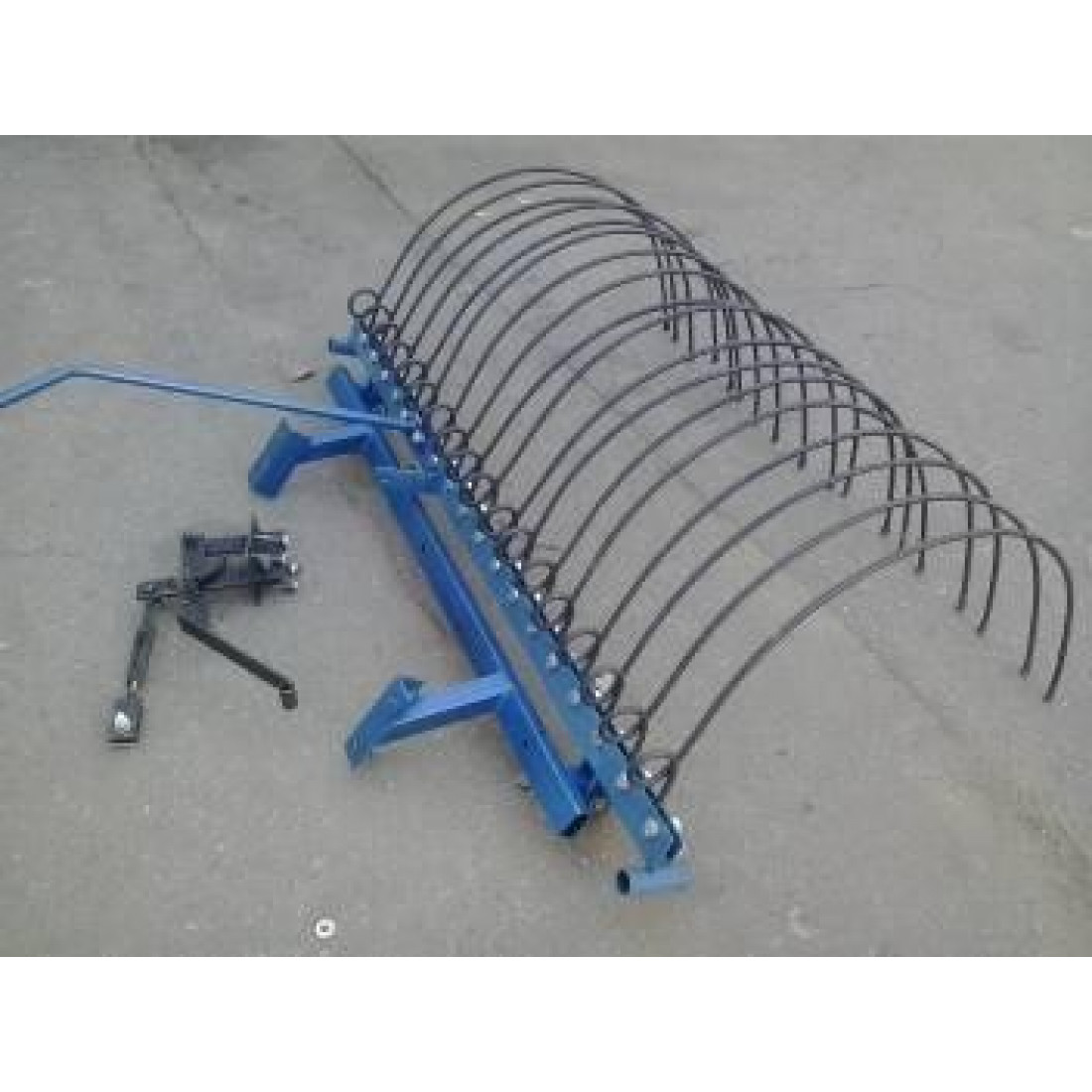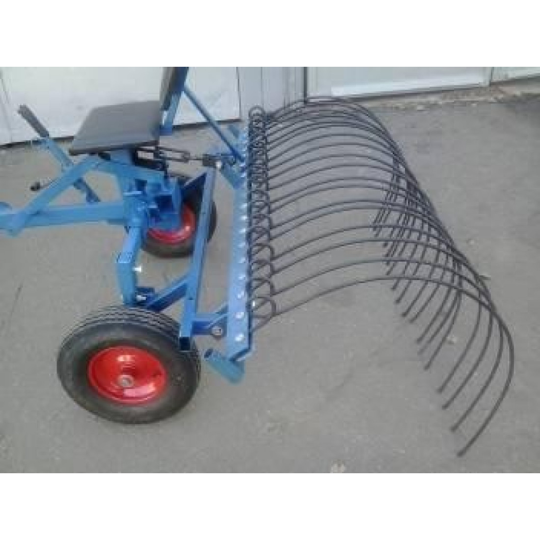 Залежно від типу, марки та виробникаГрабли к мотоблоку могут использоваться для сгребания сена, травы, очистки от выкопанных корней и для рыхления почвы. Подсоединяются к адаптеру с помощью четырех болтов. Подъем и опускание мотоблочных граблей в рабочее положение осуществляется рукояткой. Фиксация в поднятом положении производится специальным механизмом с педалью. Количество пружин в количестве 18 штук захватывают площадь в 1,4 метра.