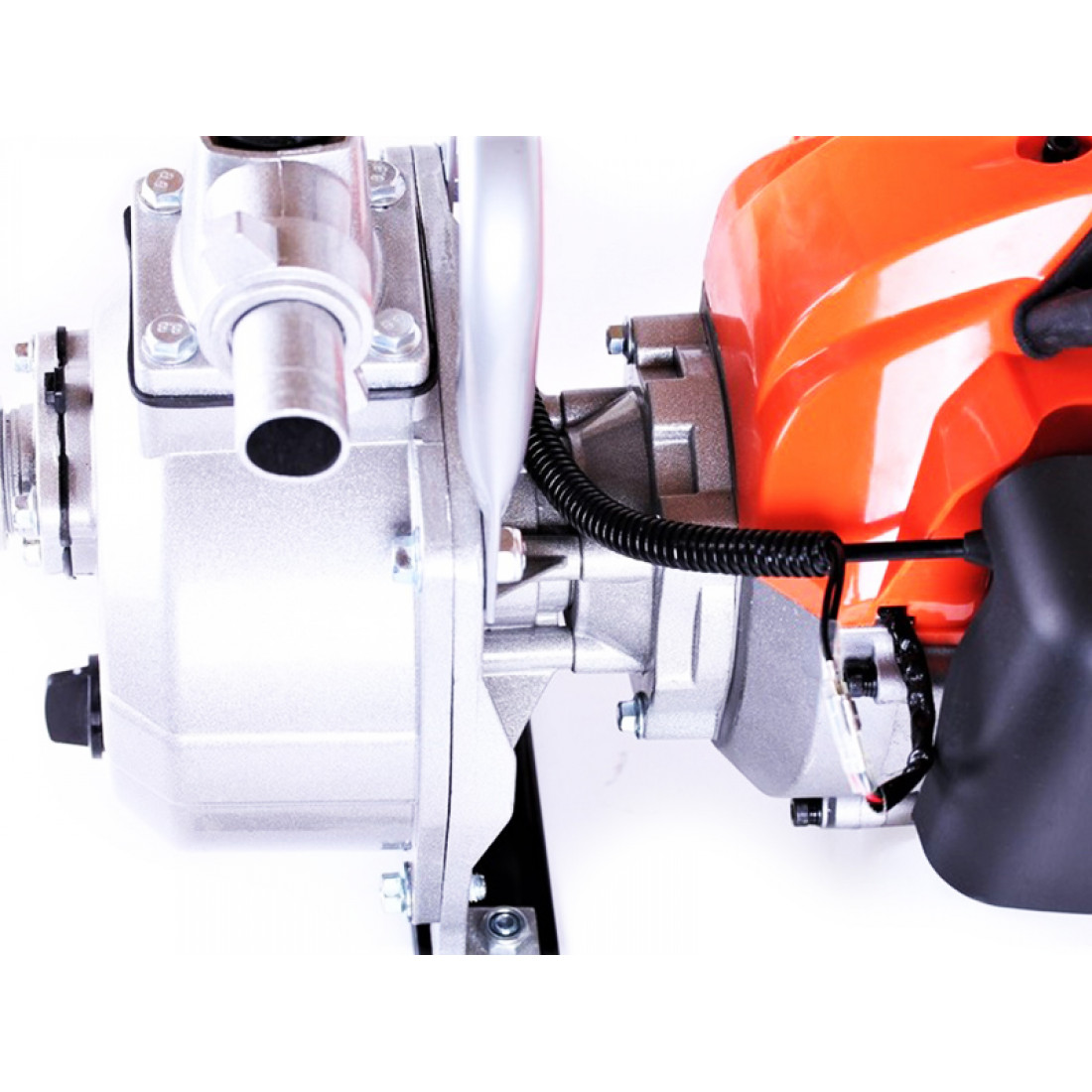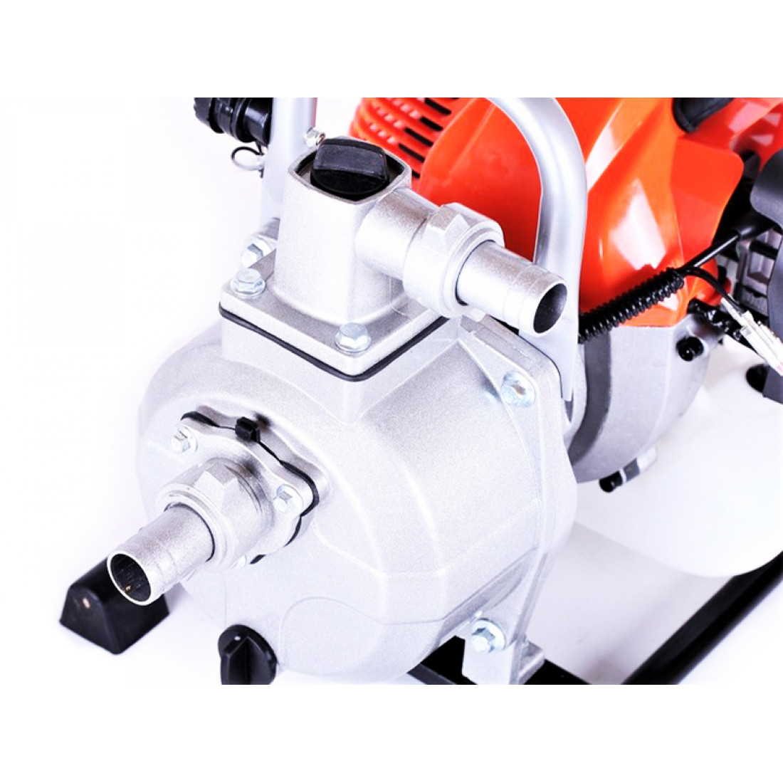 Дана бензинова помпа відрізняється високою продуктивністю - 50 м3/год і має закритий тип крильчатки колеса (лита) складається з двох дисків між якими розташовуються лопаті, завдяки об'єму двигуна 42,7 см3 створюється хороший напір, з підйомом води до 8 м. І мінімальним витоком рідини по виходу. Укомплектована 3-ходовим нагнітальним фланцем, що дозволяє підключати кілька рукавів.