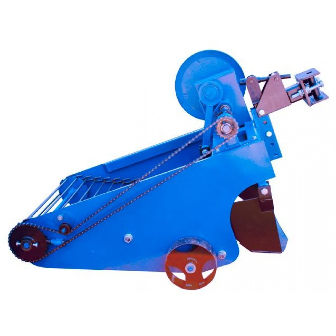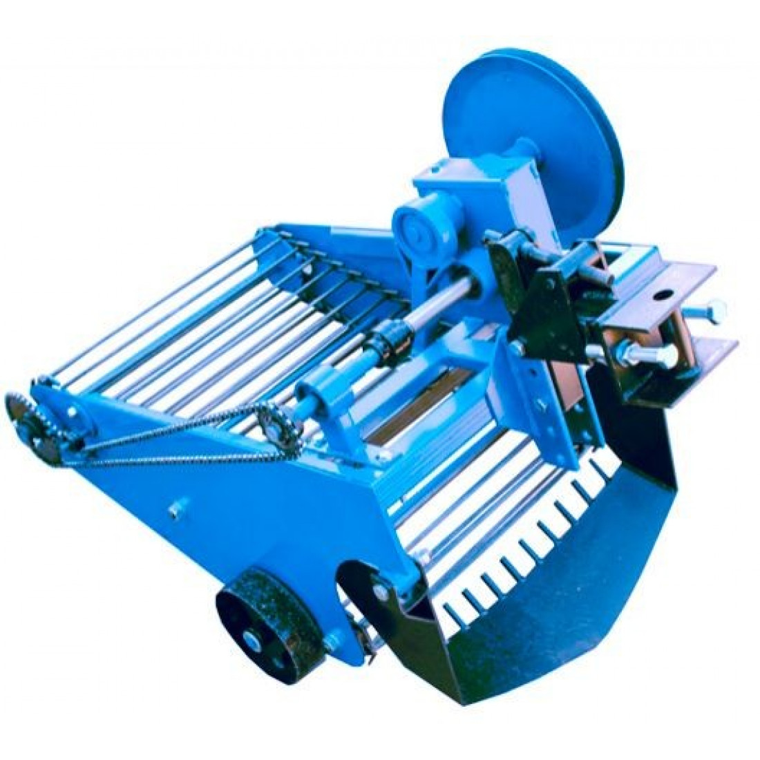 Залежно від типу, марки та виробникаКартофелекопатель транспортерный — прицепное устройство для использование совместно с мотоблоками или мототракторами, мощностью не менее 10 л.с. Данный агрегат выкапывает плоды из грунта, проходя через транспортёр остатки земли сбиваются и далее клубни укладываются на землю сверху, после чего могут быть собраны в ручную. Также орудие подходит и для выкапывания других аналогичных культур, где требуется выкопать клубни, в том числе подходит для лука.