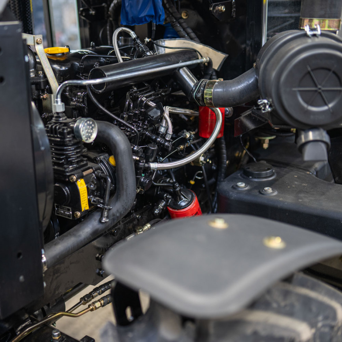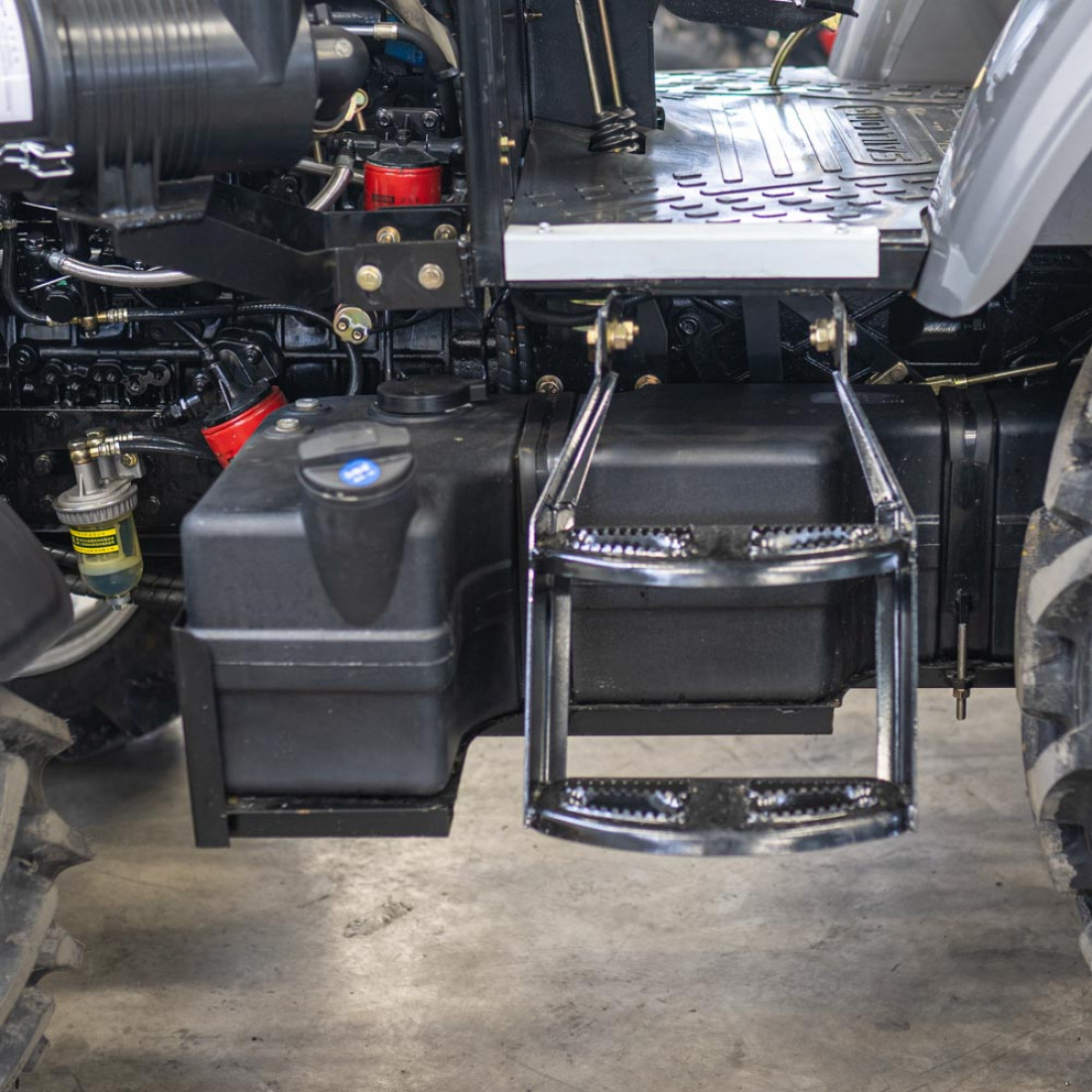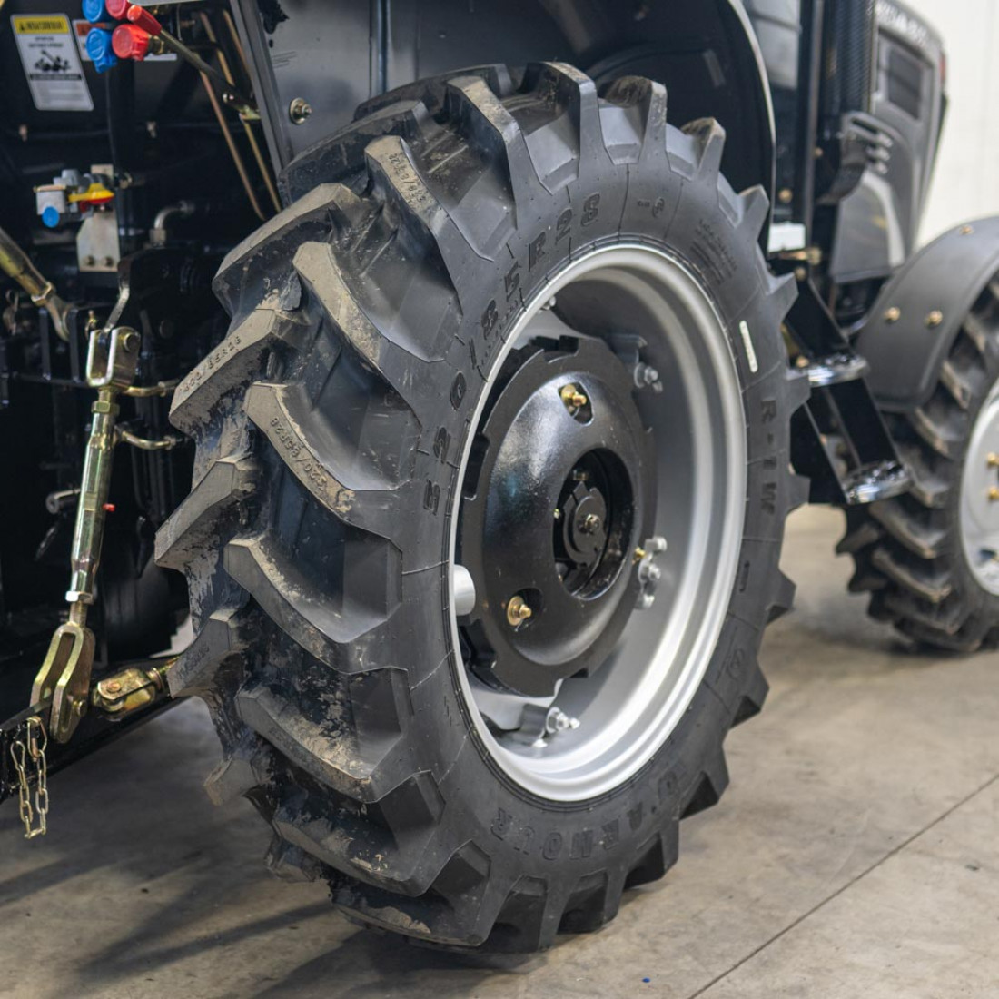 Шасси типа TE, в отличии от TY, позволяет использовать колеса большего размера - задние 12.4-28 и передние 8.3-20. Без риска для поломки трактора. Визуально КПП имеет больше размер, мощнее полуоси. Не нужно брать штангенциркуль, чтобы понять что шестерни и другие рабочие элементы значительно больше и крепче, чем используется в КПП класса TY.