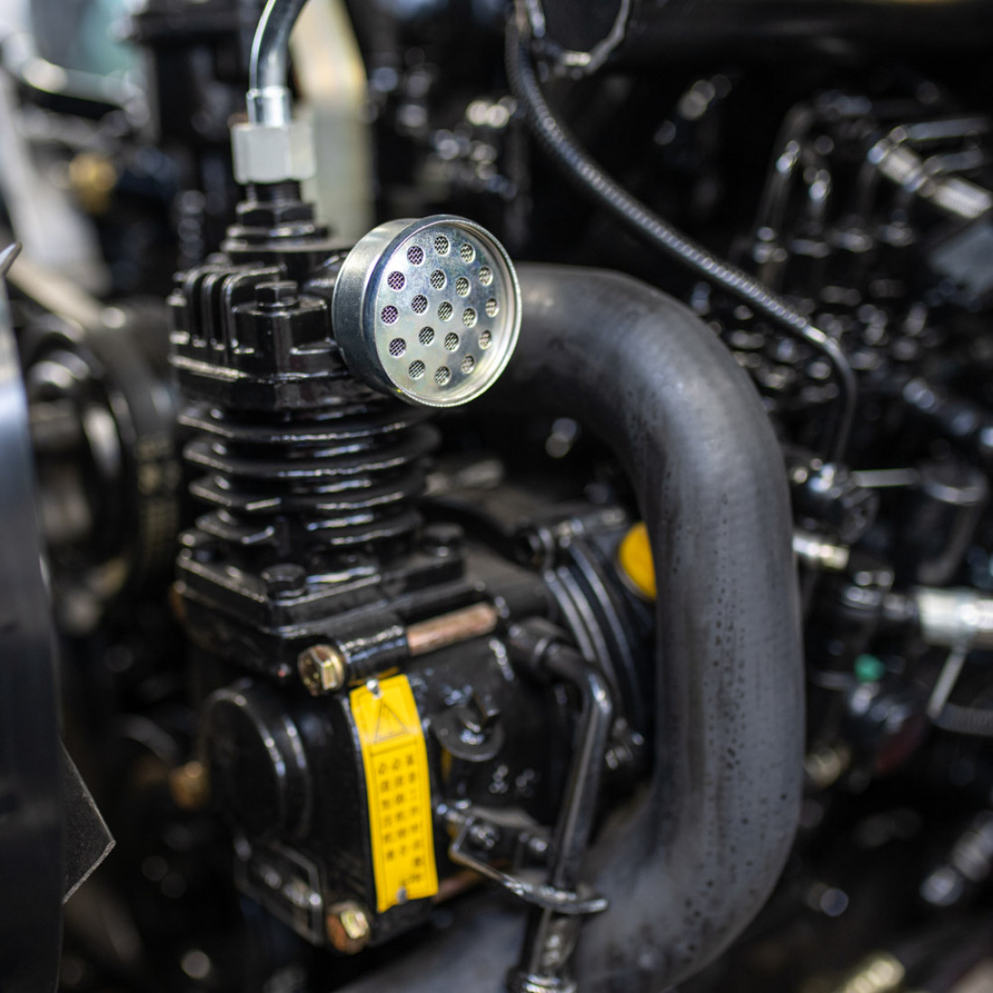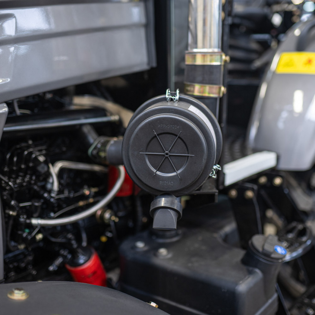 Воздушный фильтр трехэтапной очистки: масляная ванна, металлический фильтрующий элемент и циклон в верхней части фильтра.