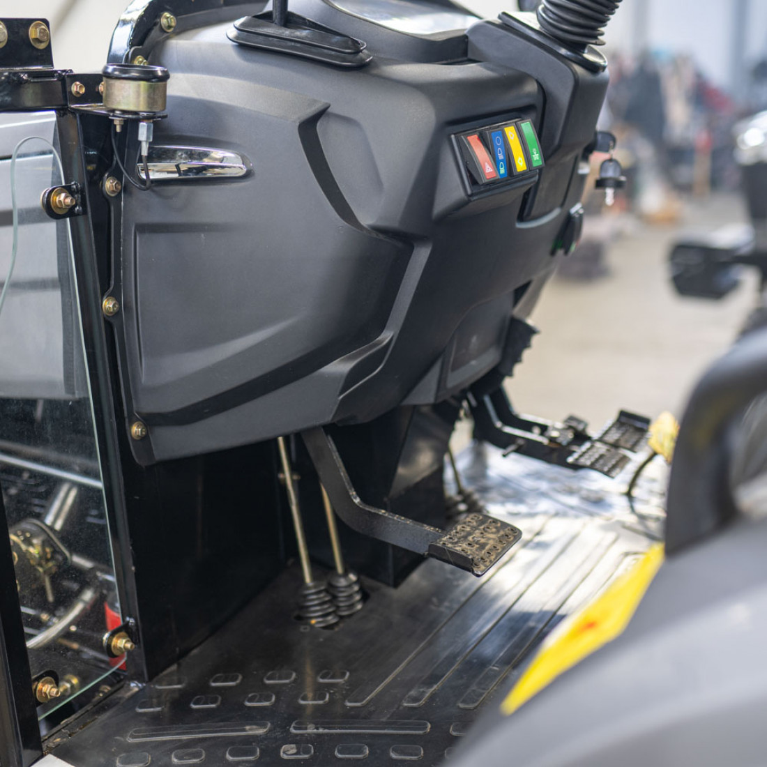 - Удобное и просторное место для оператора, синение с амортизатором и регулировкой по высоте;
