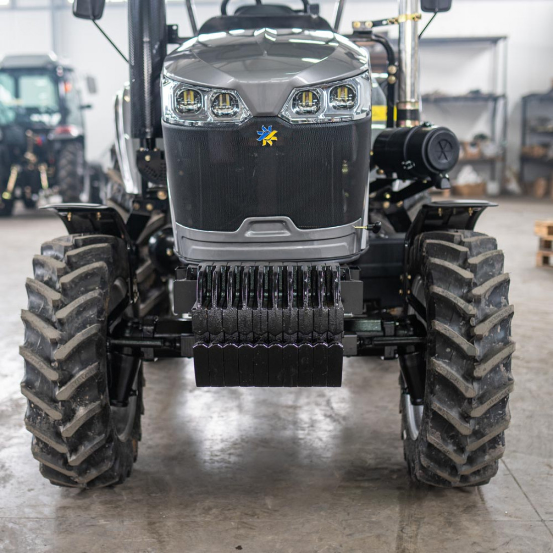 Усиленно шасси, используется с тракторами мощностью от 50 до 70 л.с.. Трехточечная подъемная система поднимает орудия массой 880 кг.