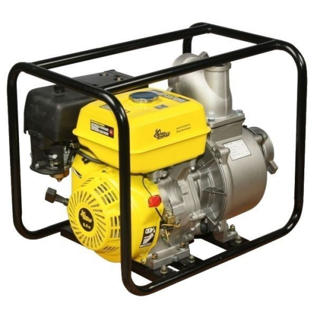 У этой бензиновой помпы мотор на 2,1 л.с. — которого достаточно что б перегонять 18 метров кубических за один час. Параметры высоты подачи и всасывания тут, как и в аналогичных моделях этого производителя 8 метров на подъём со дна и 30 метров сила подачи напора в вверх. На корпусе есть два выхода под резьбу с 40 мм. диаметрами, один для подключения трубы на вход, второй на вывод воды. Стартерный запуск вручную. Для удобства оснащена ножками и одной ручкой.
