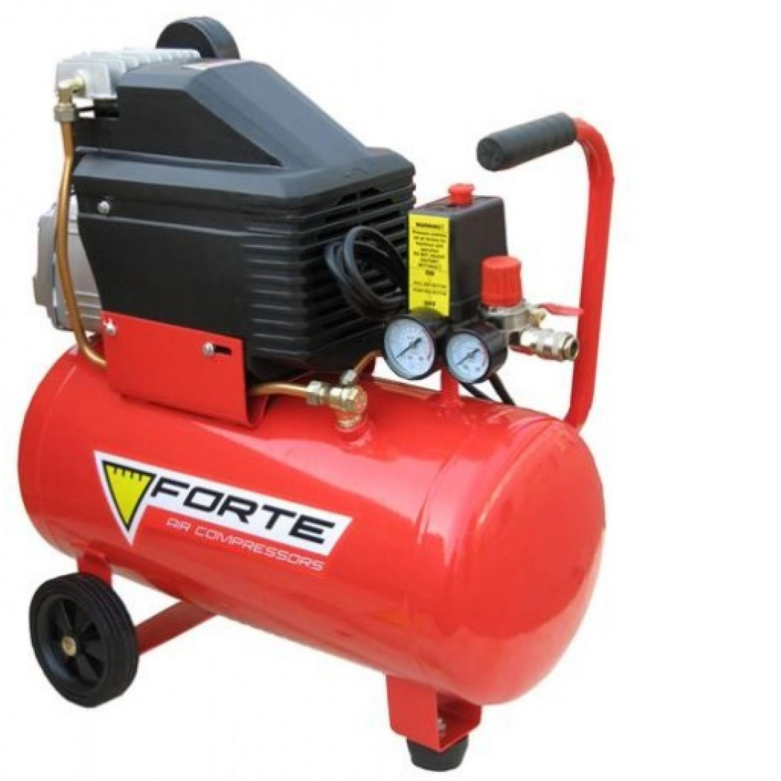Компресор Forte FL-50 має однофазний електричний двигун потужністю 1,5 кВт, безпека при роботі забезпечує захист від перегрівання, у поєднанні із системою повторного автоматичного запуску.