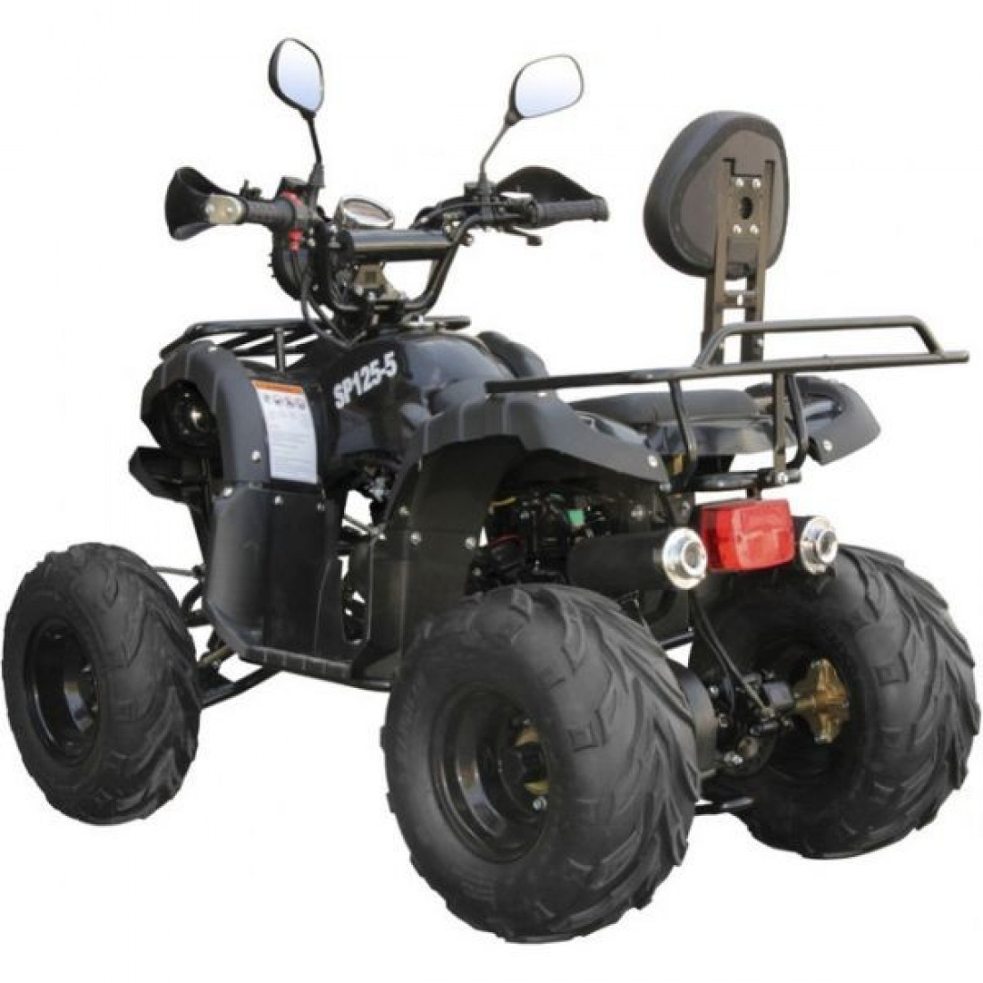 Залежно від типу, марки та виробникаSpark SP125-5 – квадроцикл для універсального використання. Чотирьох колісний транспорт для їзди пересіченою місцевістю та важкопрохідними місцями, такими як лісові дороги, грунтовки, гористі місцевості та інше. Цей транспорт підходить як для людей, які віддають перевагу активному відпочинку за містом, так і мисливцям, рибалкам і любителям відпочинку на природі. Дві місткі зони для багажу, як спереду, так і ззаду дають можливість завантажити сумки та інші речі на кузов, закріпивши їх ременем. Розрахована модель на одну людину, підвіска ефективно справляється з вибоїнами та нерівностями дозволяючи комфортно почуватися за кермом. Фари та стоп-сигнал, дозволяють використовувати апарат у вечірній та нічний час.