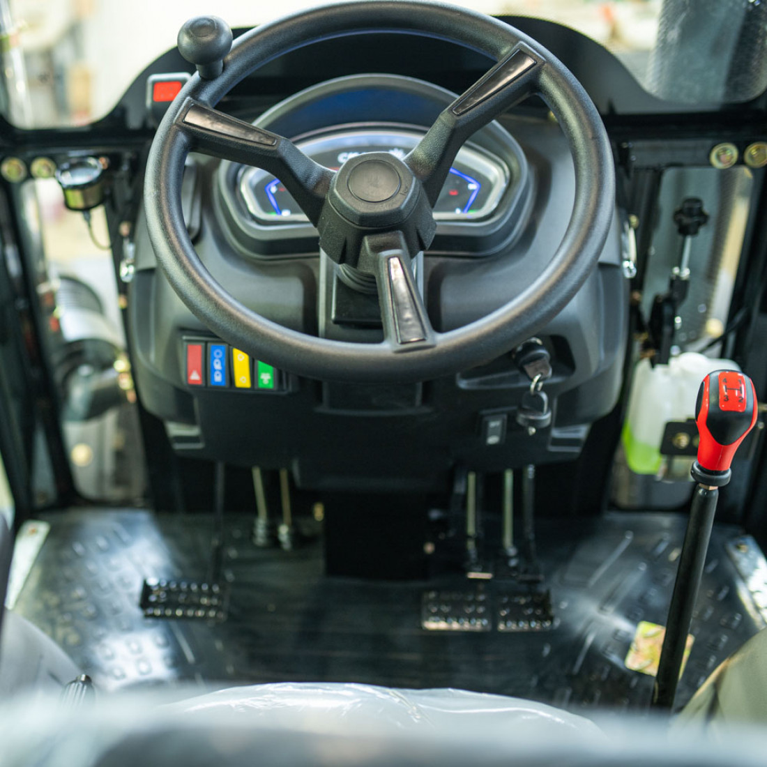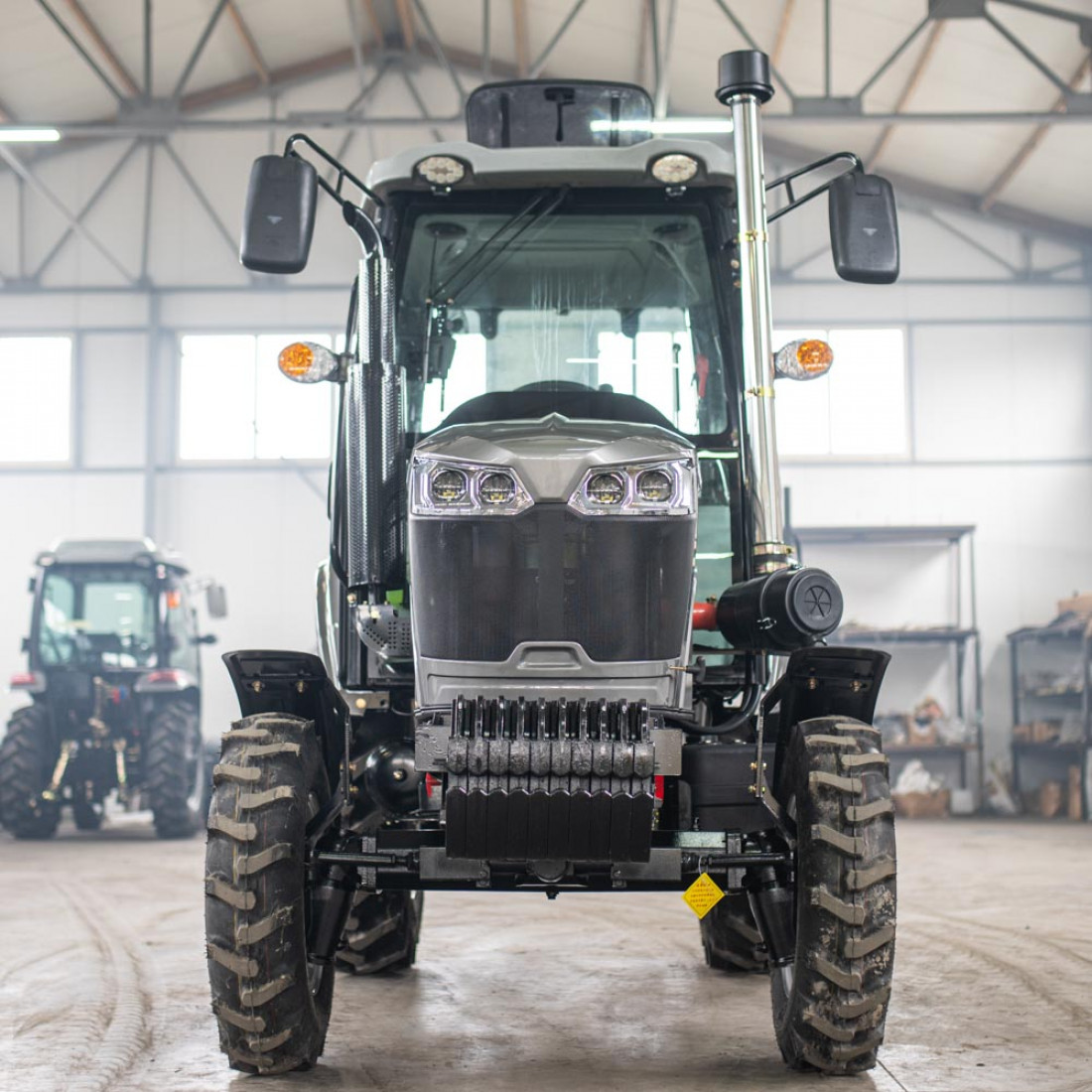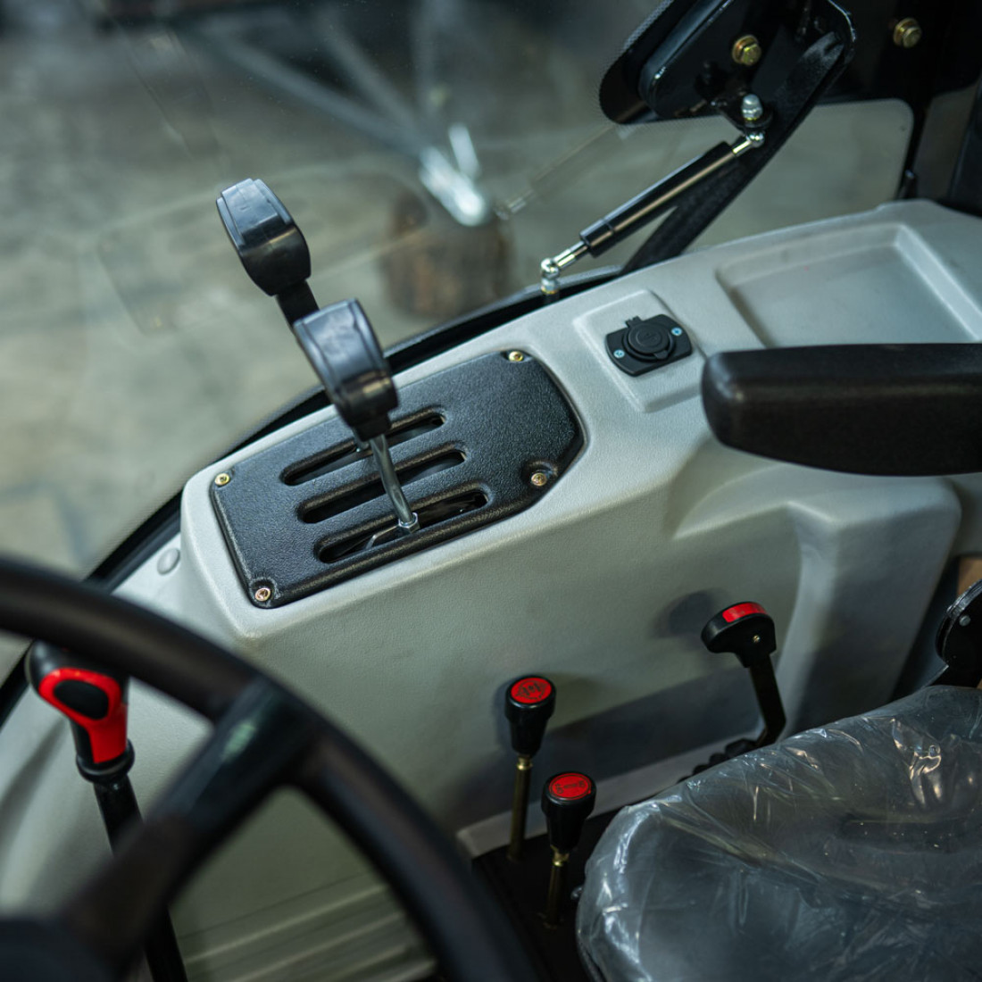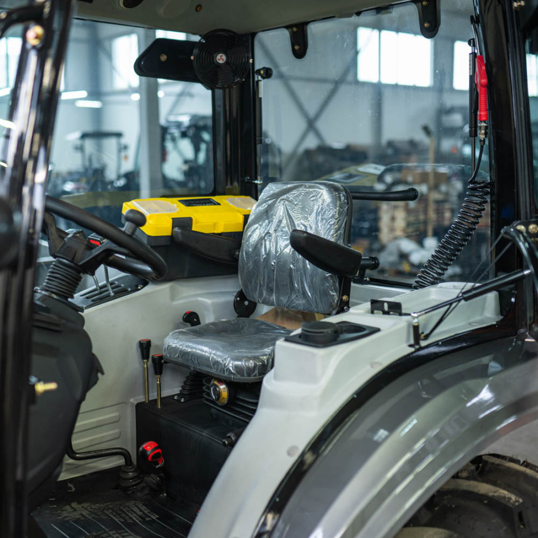 Наш трактор оснащений надійним шасі, яке готове до роботи у будь-яких умовах. З колісною формулою 4x4 він забезпечує відмінне зчеплення з поверхнею навіть на нерівних ділянках. Завдяки гідрооб'ємному рульовому управлінню та формулі перемикання передач (4+4)х2, керування трактором легке та зручне. А кабіна з вентиляцією, опаленням та оглядом 360° забезпечує комфортне та безпечне робоче місце для вас у будь-яку погоду.
