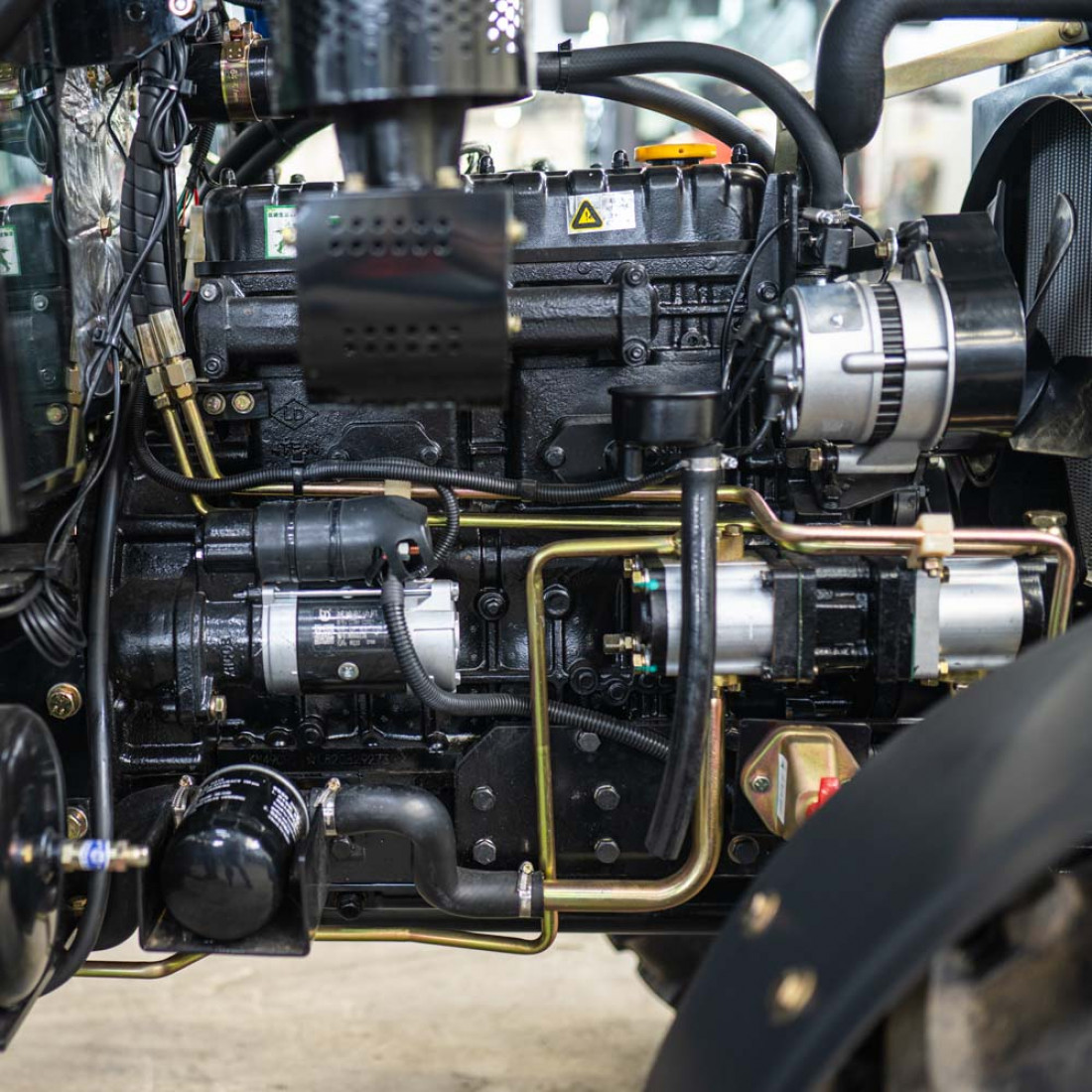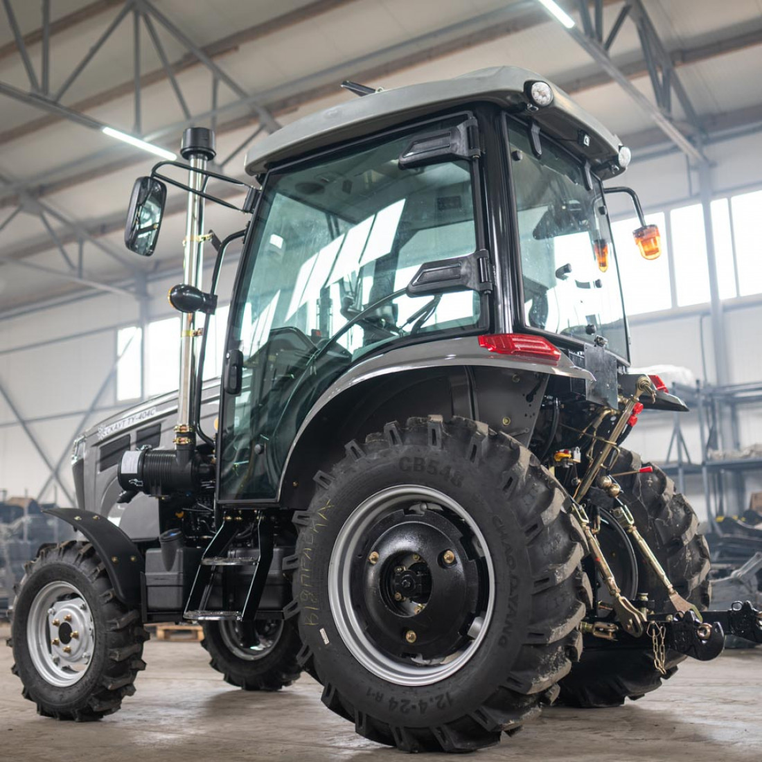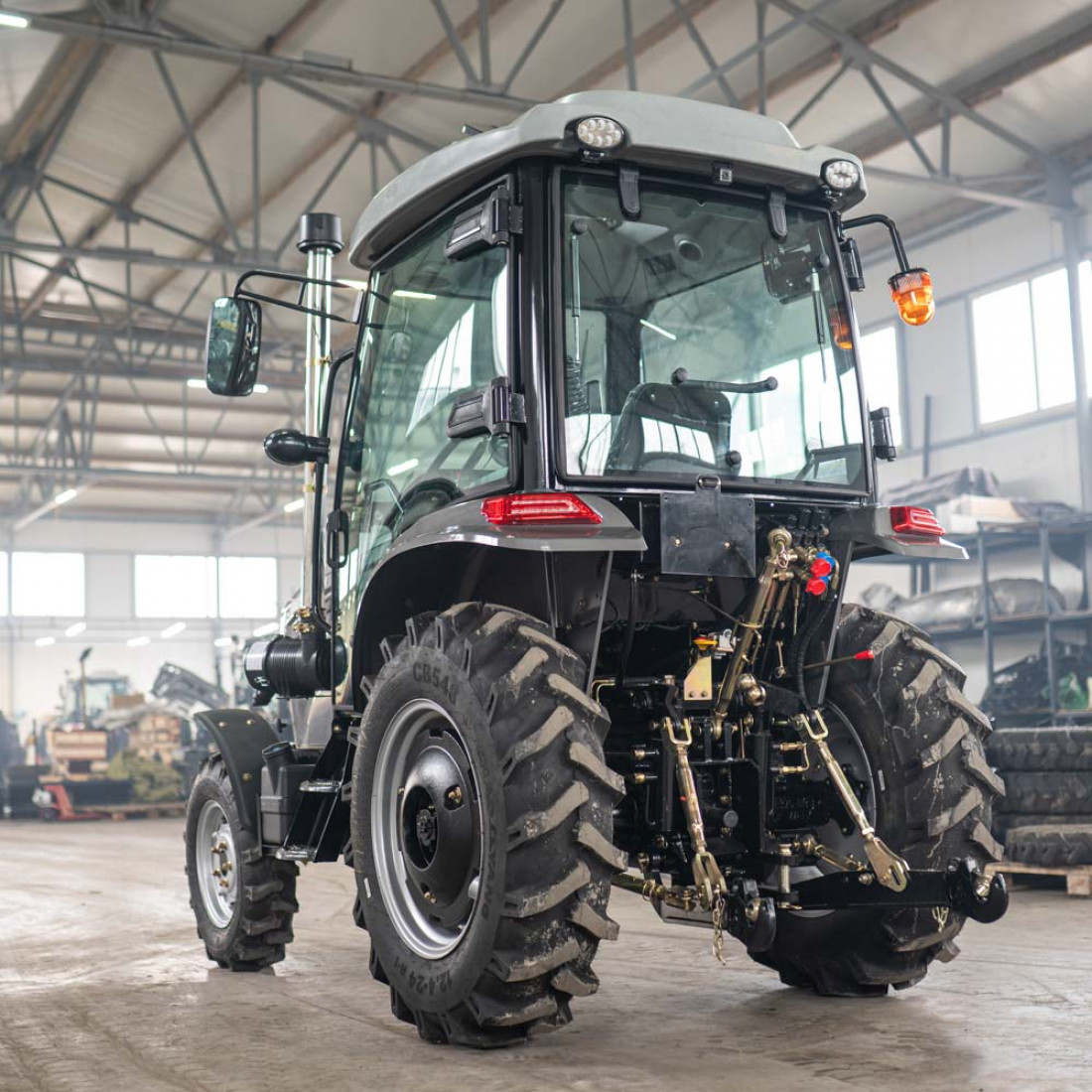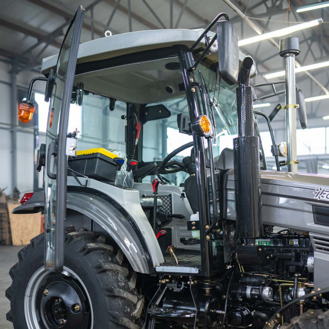 Наш трактор оснащений надійним шасі, яке готове до роботи у будь-яких умовах. З колісною формулою 4x4 він забезпечує відмінне зчеплення з поверхнею навіть на нерівних ділянках. Завдяки гідрооб'ємному рульовому управлінню та формулі перемикання передач (4+4)х2, керування трактором легке та зручне. А кабіна з вентиляцією, опаленням та оглядом 360° забезпечує комфортне та безпечне робоче місце для вас у будь-яку погоду.
