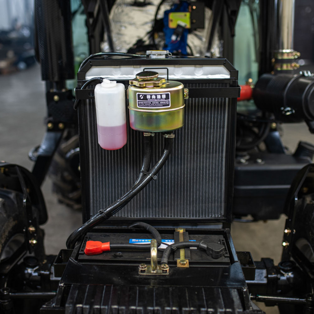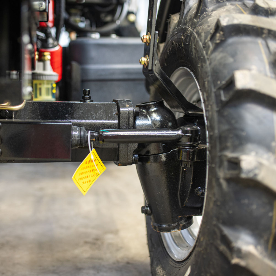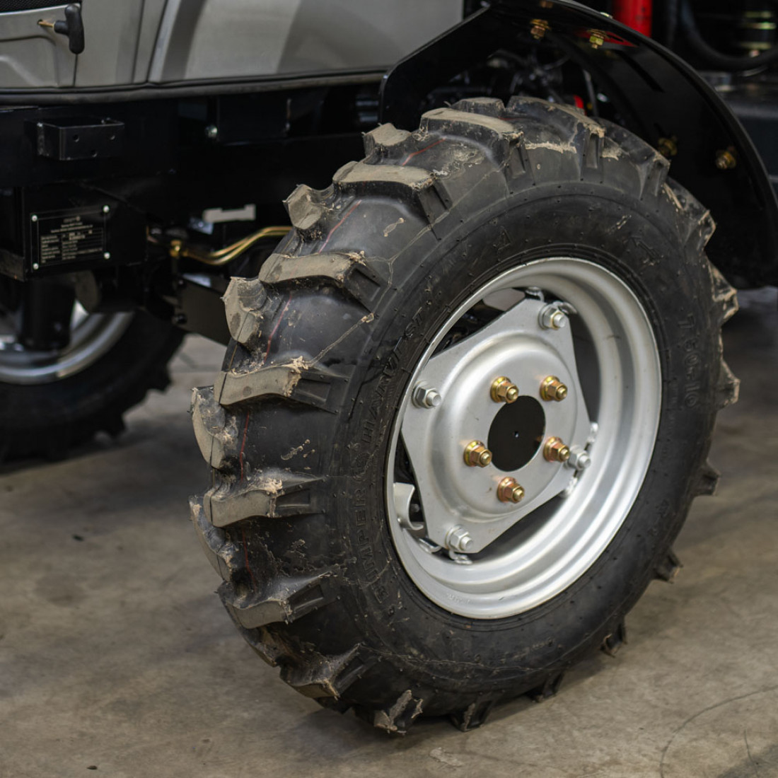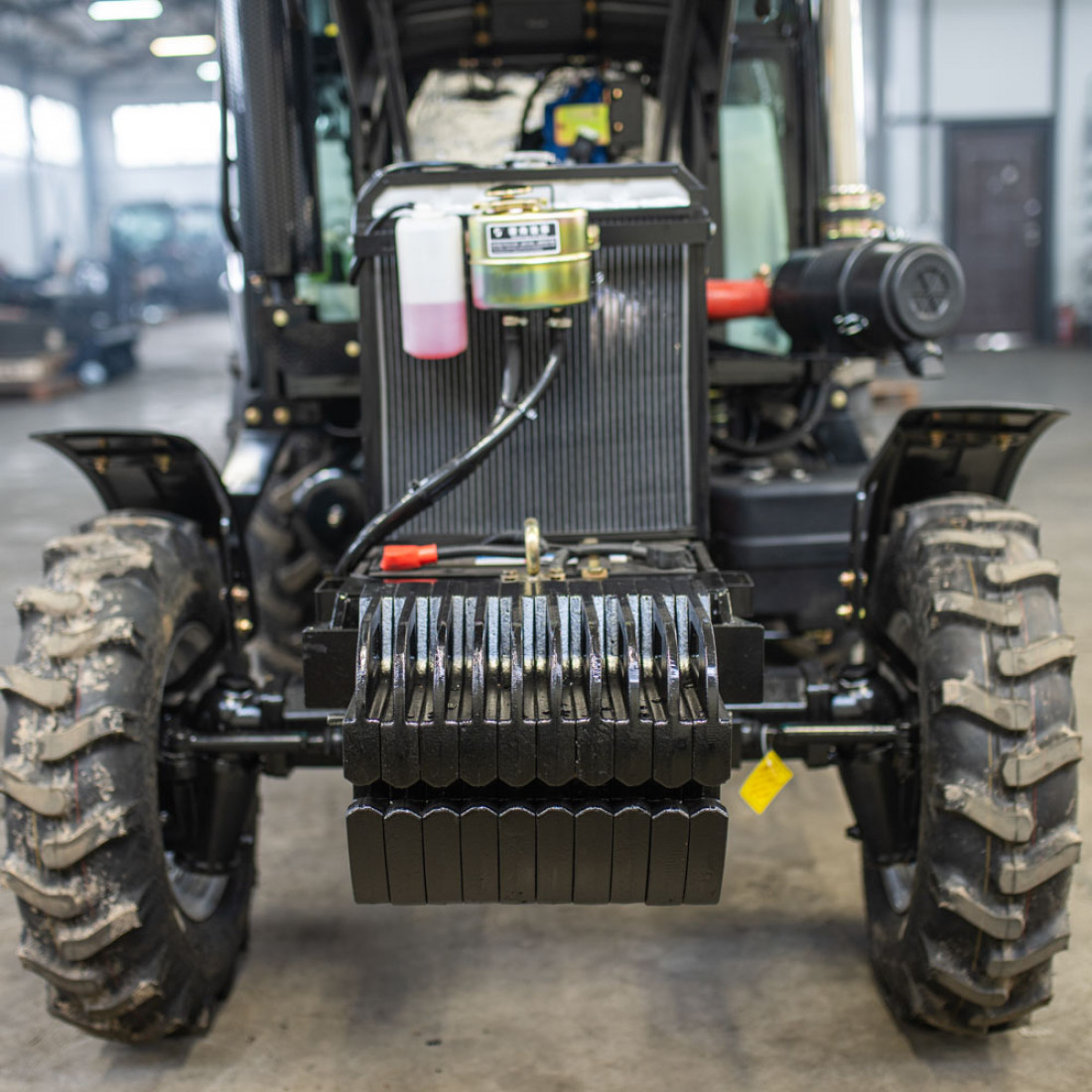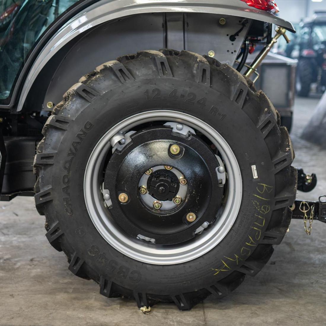 Наш трактор оснащений надійним шасі, яке готове до роботи у будь-яких умовах. З колісною формулою 4x4 він забезпечує відмінне зчеплення з поверхнею навіть на нерівних ділянках. Завдяки гідрооб'ємному рульовому управлінню та формулі перемикання передач (4+4)х2, керування трактором легке та зручне. А кабіна з вентиляцією, опаленням та оглядом 360° забезпечує комфортне та безпечне робоче місце для вас у будь-яку погоду.
