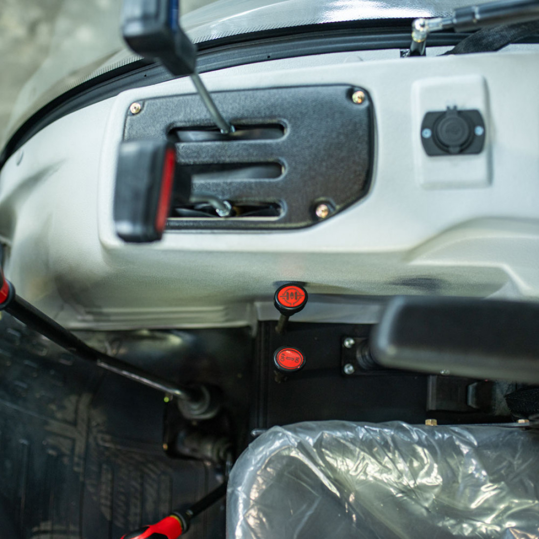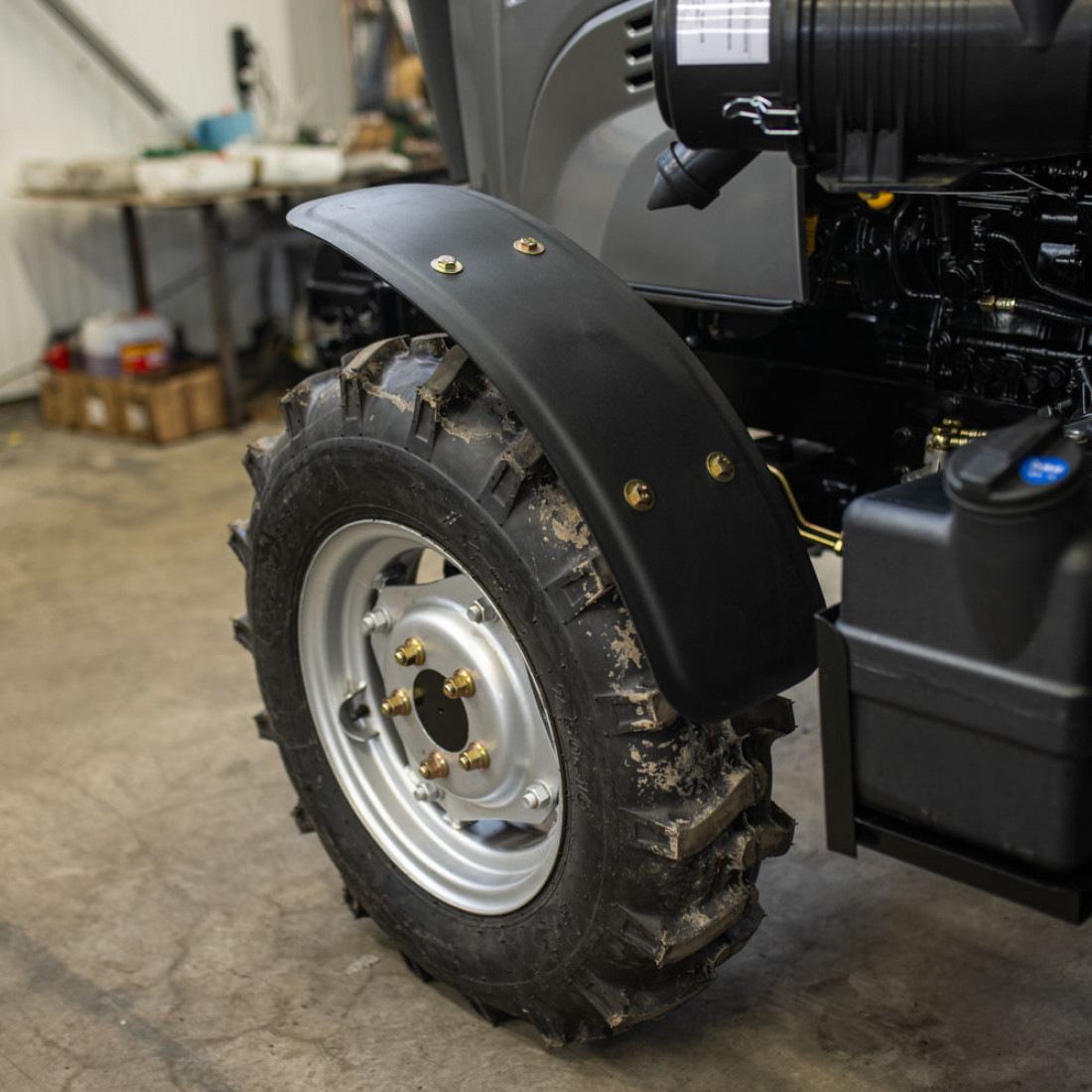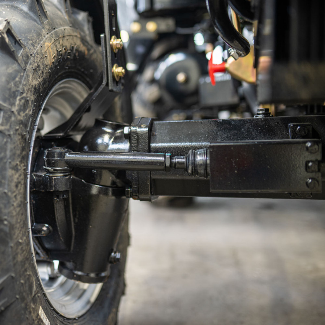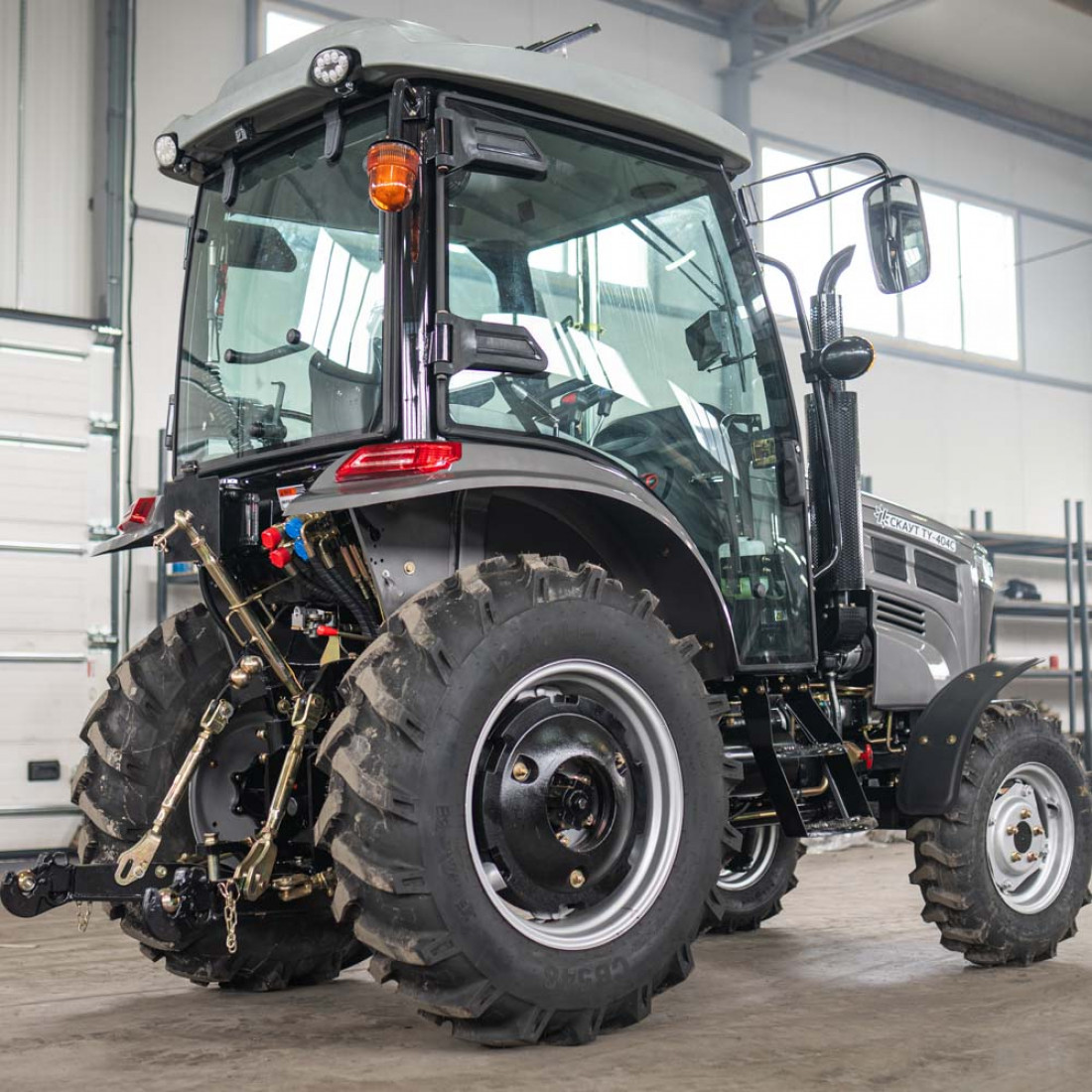 Наш трактор оснащений надійним шасі, яке готове до роботи у будь-яких умовах. З колісною формулою 4x4 він забезпечує відмінне зчеплення з поверхнею навіть на нерівних ділянках. Завдяки гідрооб'ємному рульовому управлінню та формулі перемикання передач (4+4)х2, керування трактором легке та зручне. А кабіна з вентиляцією, опаленням та оглядом 360° забезпечує комфортне та безпечне робоче місце для вас у будь-яку погоду.