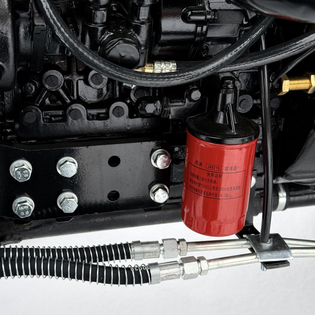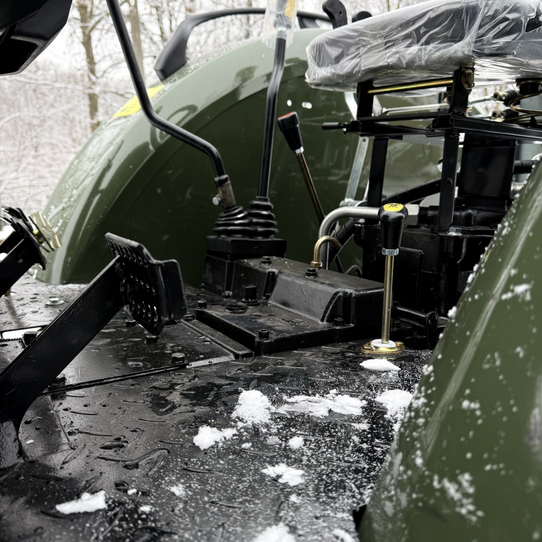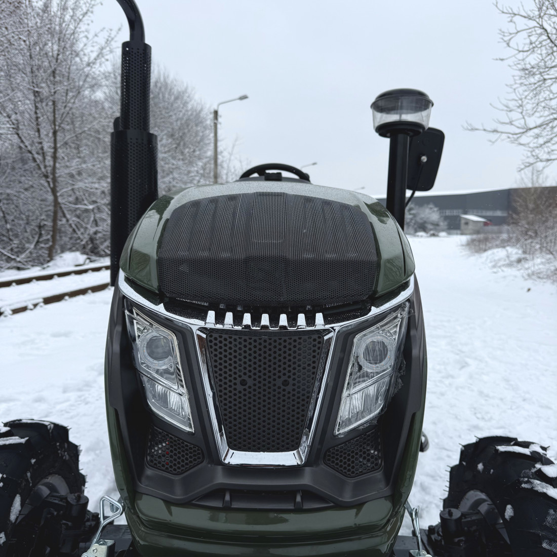 Маса трактора – 1430 кг, що забезпечує оптимальну стійкість і баланс між потужністю та маневреністю.