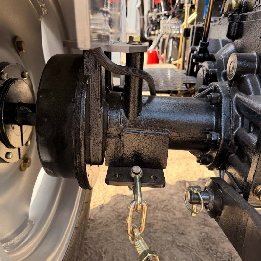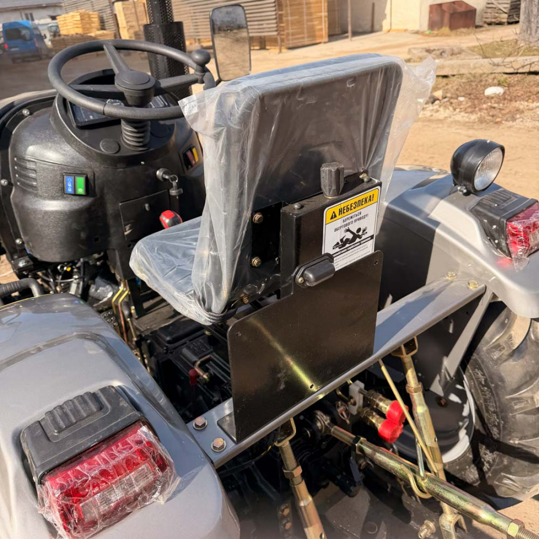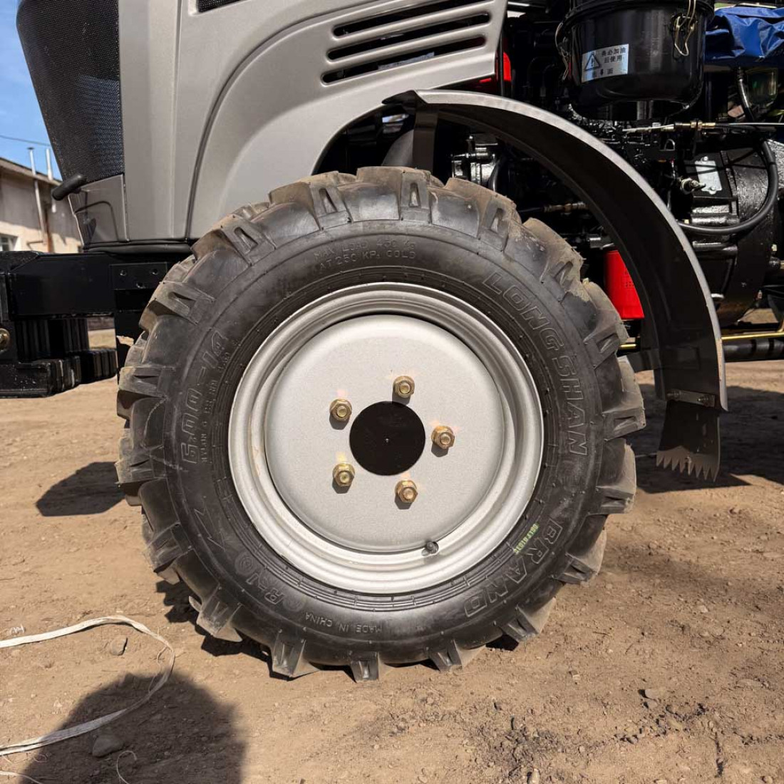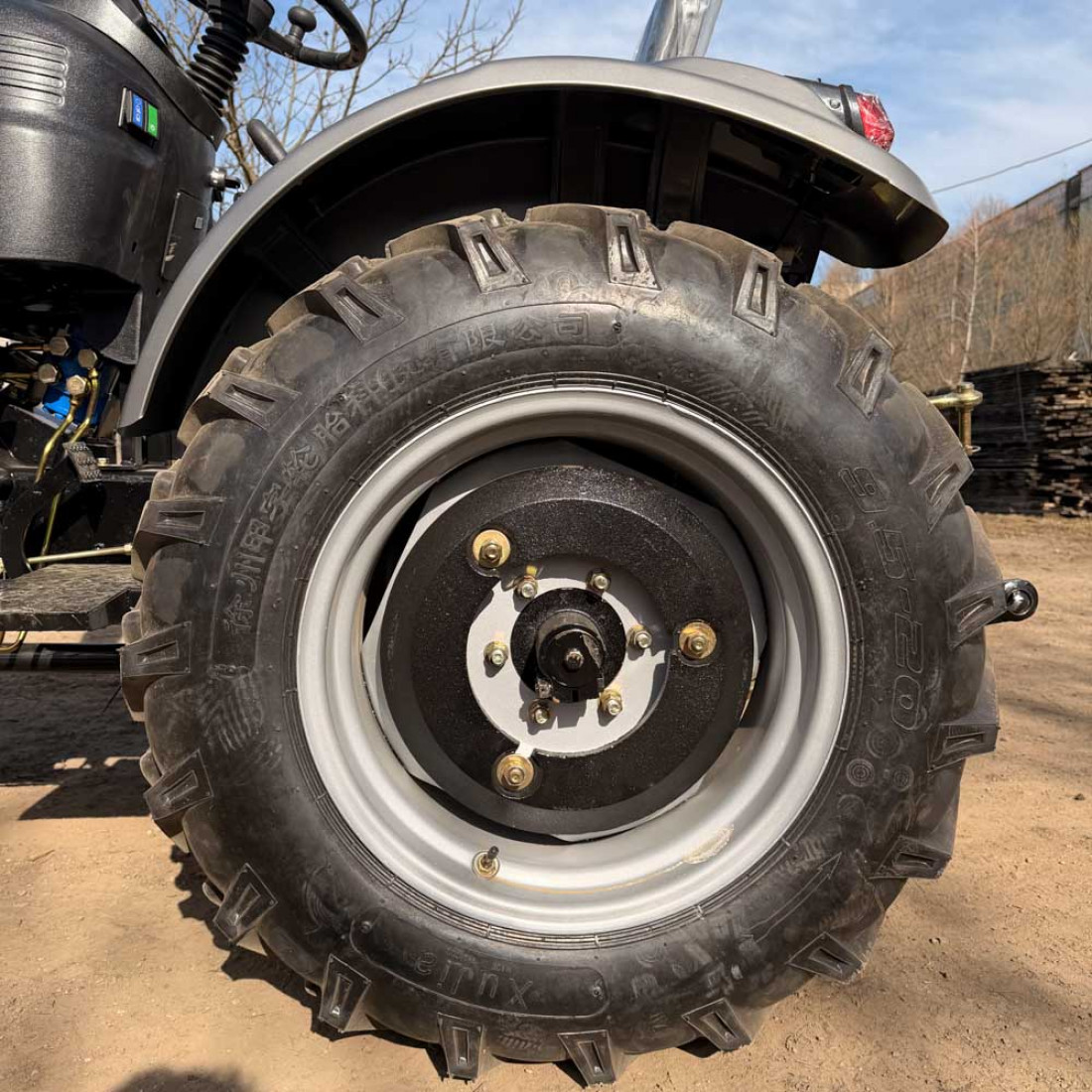 Широкі для даної моделі міні-трактора, задні колеса 9,50-20 і передні 6,00-14. Агротехнічний просвіт 300 мм цього достатньо для виконання будь-яких сільськогосподарських завдань.