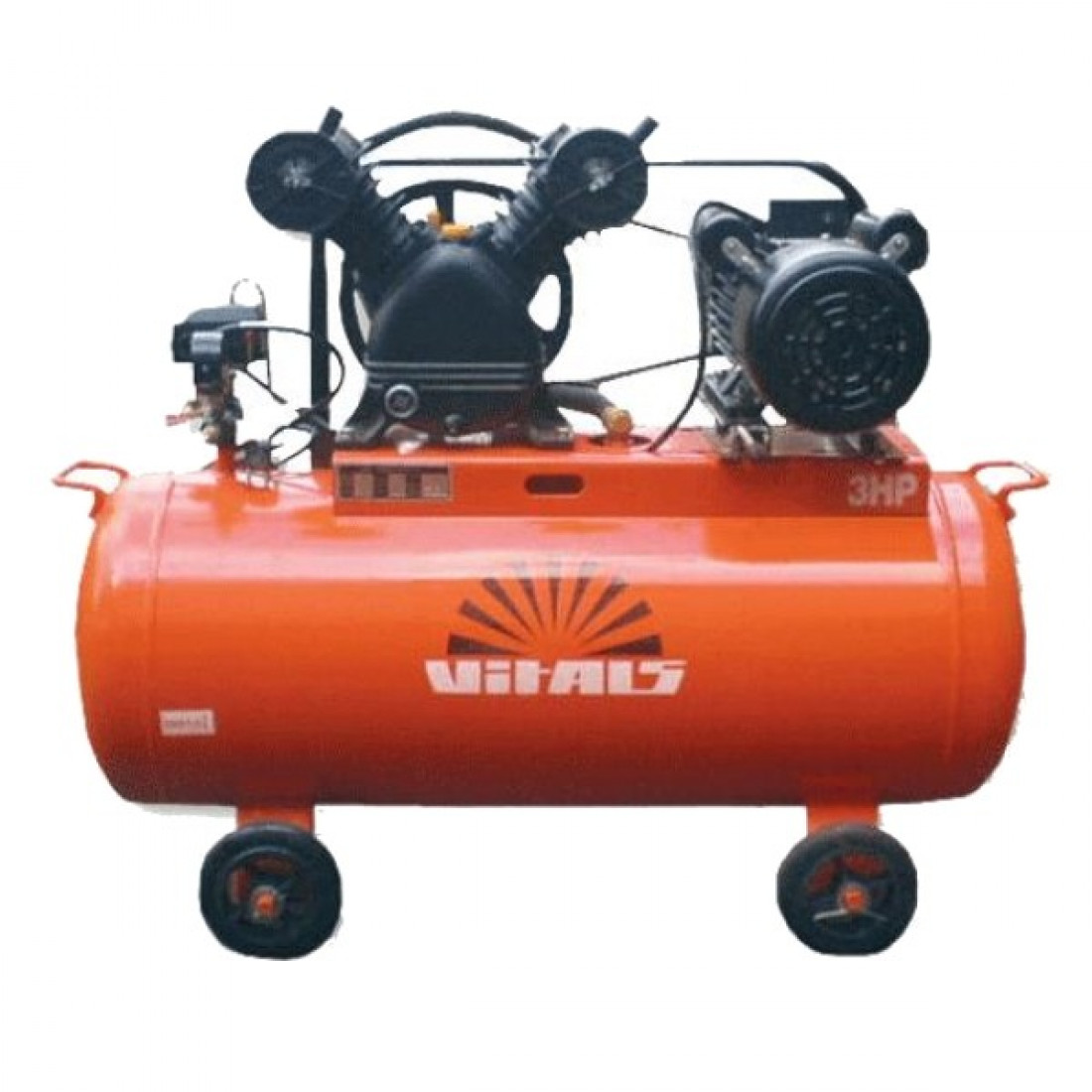 Залежно від типу, марки та виробникаКомпресор VITALS KV3081R латвійського виготовлення чудово поєднує в собі продуктивну роботу, зручні умови використання і довгий термін служби. Апарат має ергономічний та сучасний дизайн. Рушійною частиною в такій моделі виступає електродвигун потужністю 2300 Вт, що і надає руху основний робочий вузол, тобто поршневу групу. 2 V-подібно розташованих поршня безпосередньо пов'язані з мотором за допомогою ремінної передачі, завдяки якій забезпечується низький рівень вібрації і шуму. Агрегат має 81-літровий горизонтальний ресивер, розрахований на тиск 9 атмосфер. Під ним прироблено 4 ніжки з металевими, прогумованими колесами, що забезпечують плавний і легкий хід, і дають можливість переміщати без проблем пристрій до місця роботи.