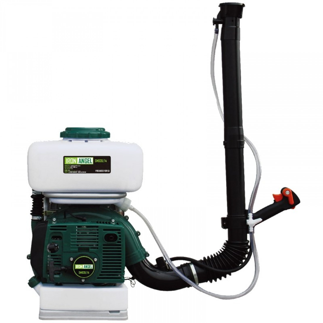 Легкий запуск двигуна обприскувача Iron Angel SMB 35/14 досягається системою "легкий старт". Вбудована антивібраційна система підвищує комфортність під час роботи з пристроєм. Широкі ранцеві ремені та м'який комфортний захист спини згладжує вагу обприскувача. Особливістю даної моделі є вдосконалений запуск двигуна, внаслідок чого мотообприскувач стартує з півоберта. Баки з напівпрозорого пластику дозволяють візуально контролювати рівень палива і добрив, що залишився для роботи. Спеціальна ергономічна рукоятка доповнює ефективність керування. Система складання мотообприскувача Iron Angel звичайнісінька, а зберігання та експлуатація не вимагатиме від Вас спеціальних умов.