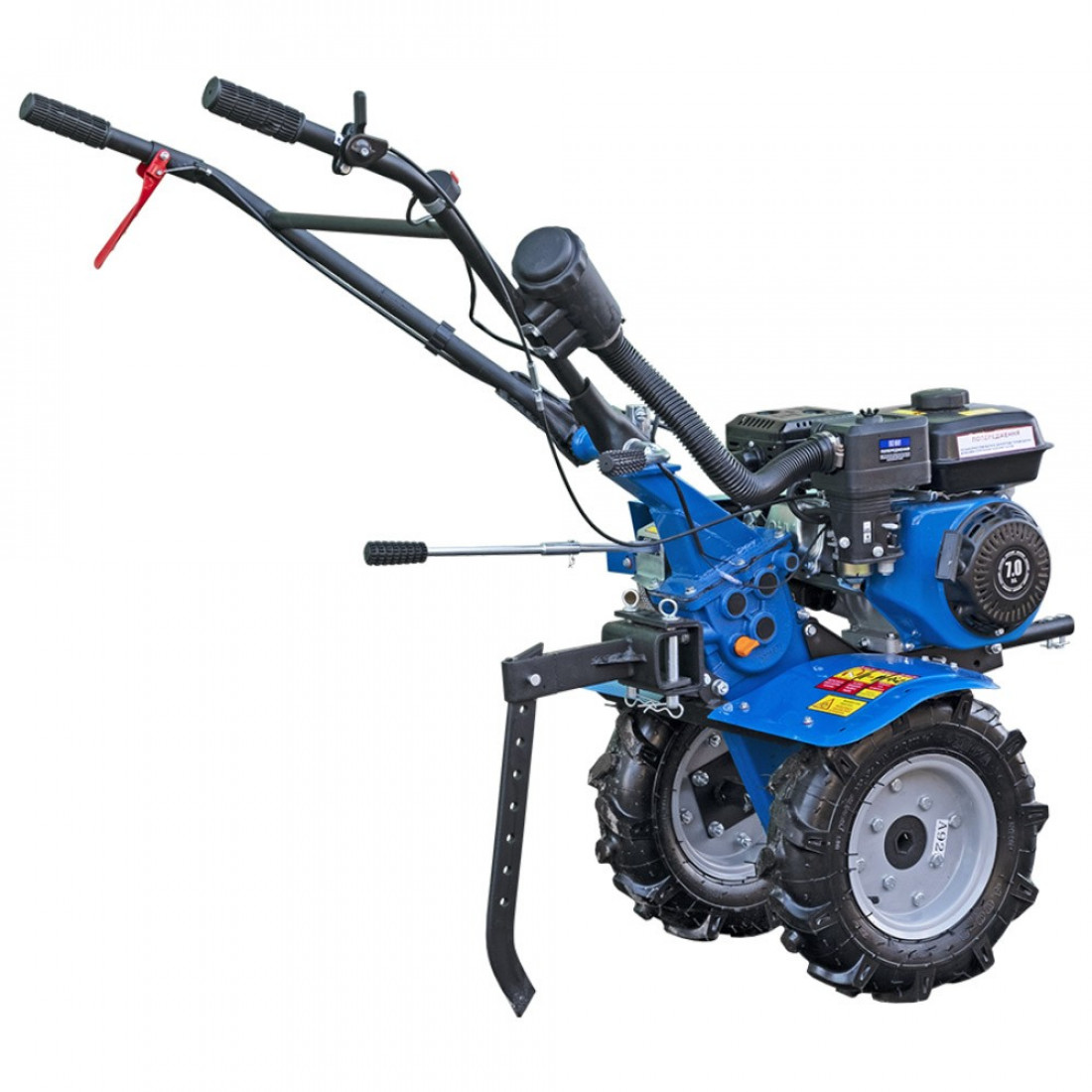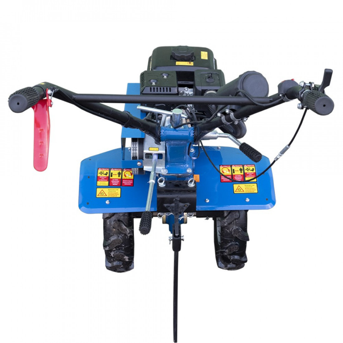 Головною перевагою даної моделі - чавунний шестерний редуктор, 3-х струмковий шків з двома ременями дозволяє встановлювати додаткове активне обладнання, наприклад, роторну косарку. Для цього на рамі попереду передбачено спеціальне кріплення під косарку. У комплекті з мотоблоком поставляється розбірна фреза, яка складається з 6 частин, завдяки такому рішенню існує можливість вибрати ширину культивації від 450/860 мм. Три передачі, 2 вперед і 1 назад, значно підвищують якість території, що обробляється. Завдяки приводним колесам 3.5-6 значно знижується навантаження на руки оператора під час транспортування до місця експлуатації.