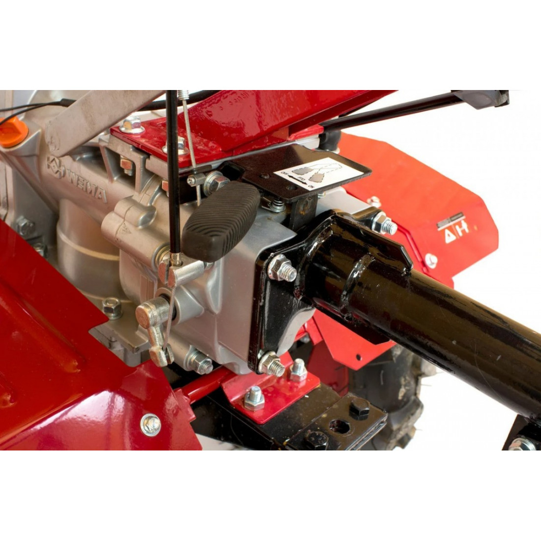 Багатодискове зчеплення в масляній ванні та професійний шестерний редуктор – це дуже надійна деталь мотоблоку, необхідна для роботи на різних ґрунтах. Мотоблок WEIMA WM1100C-6 комплектується набірними фрезами (3+1) шириною захвату 110 см, може працювати з широким спектром навісного обладнання, у тому числі роторною сінокосаркою WEIMA 1100-6, що працює від валу відбору потужності. Коса була спеціально сконструйована під цей мотоблок та має свої передавальні числа для бездоганної роботи на другій швидкості. Крім того, виконувати покіс трави з метою заготівлі сіна можна, використовуючи візок. Але і це не все, модель універсальна ― за допомогою мотоблочної лопати, може виконувати снігоприбиральні роботи. Має колеса з пневматичними шинами, що забезпечують бездоганну прохідність. Чотири швидкісні режими зумовлюють маневреність і вибір оптимальної швидкості в залежності від складності роботи, що виконується.