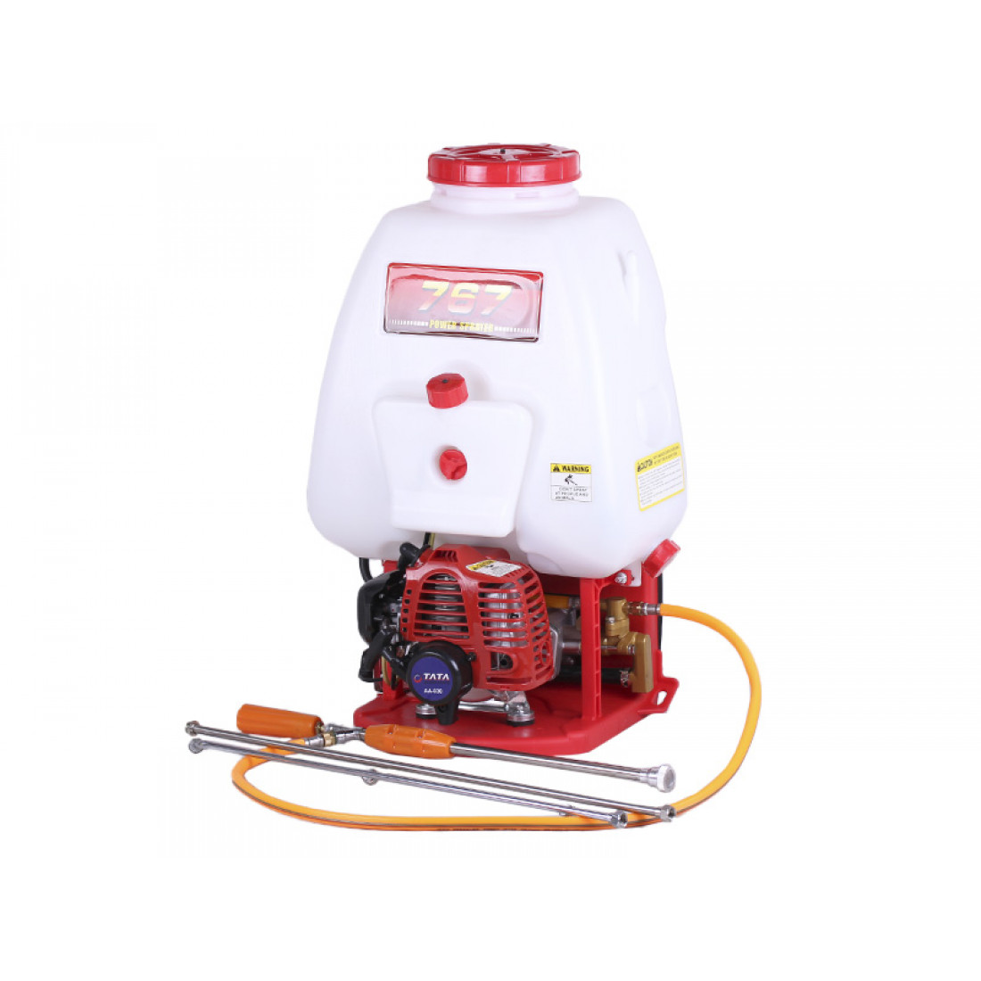 Залежно від типу, марки та виробникаБензиновий обприскувач TATA KS-767 – головний, надійний помічник у розпиленні рідин для захисту та росту рослин. Розрахований на розпилення рідких та гранульованих отрутохімікатів та добрив. Незамінний помічник у садах, на присадибних ділянках, городах та виноградниках. Витрата рідини 4 - 6 л/хв. Працює на бензині марки А92. Місткість паливного бака 0,6 л. Суміш палива з олією 25:1.