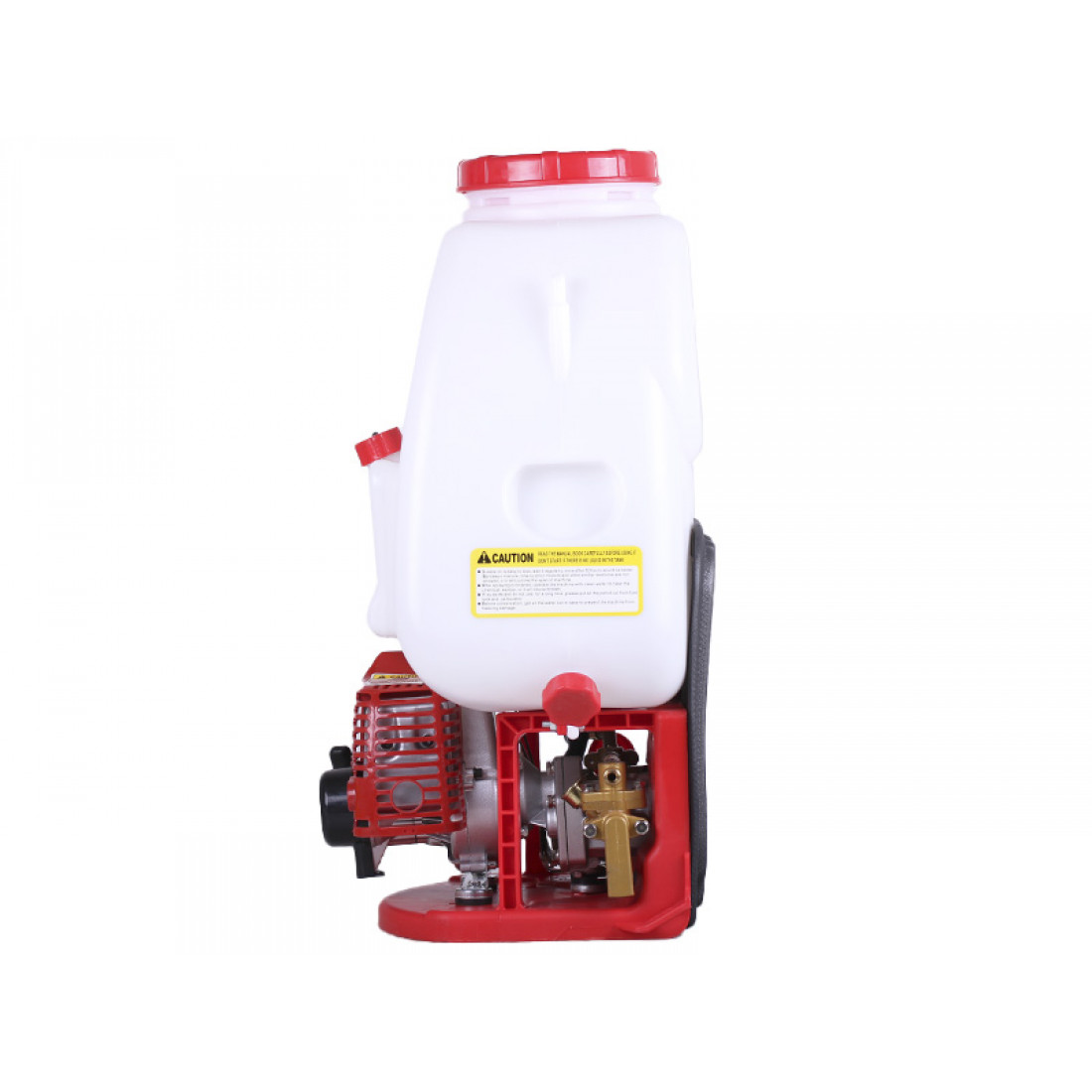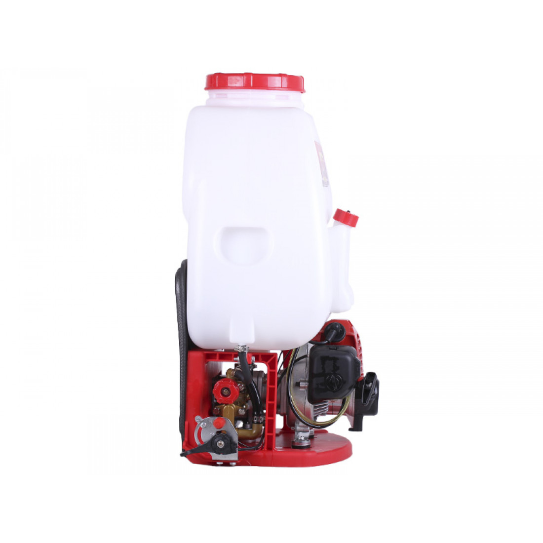 Обприскувач оснащений двотактним двигуном потужністю 1,4 л. об'ємом 25,6 см куб. Резервуар має об'єм 25 літрів. Виконана з нержавіючої сталі телескопічна трубка не піддається окисленню. Завдяки системі регулювання тиску, якою обладнано обприскувач, невеликі та тендітні рослини не будуть пошкоджені. Ремені з регулюванням висоти допоможуть підігнати положення бака по фігурі.