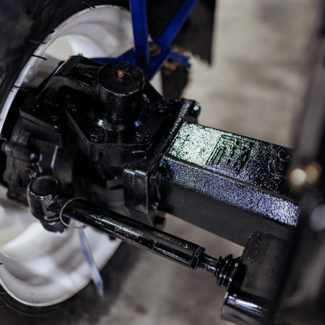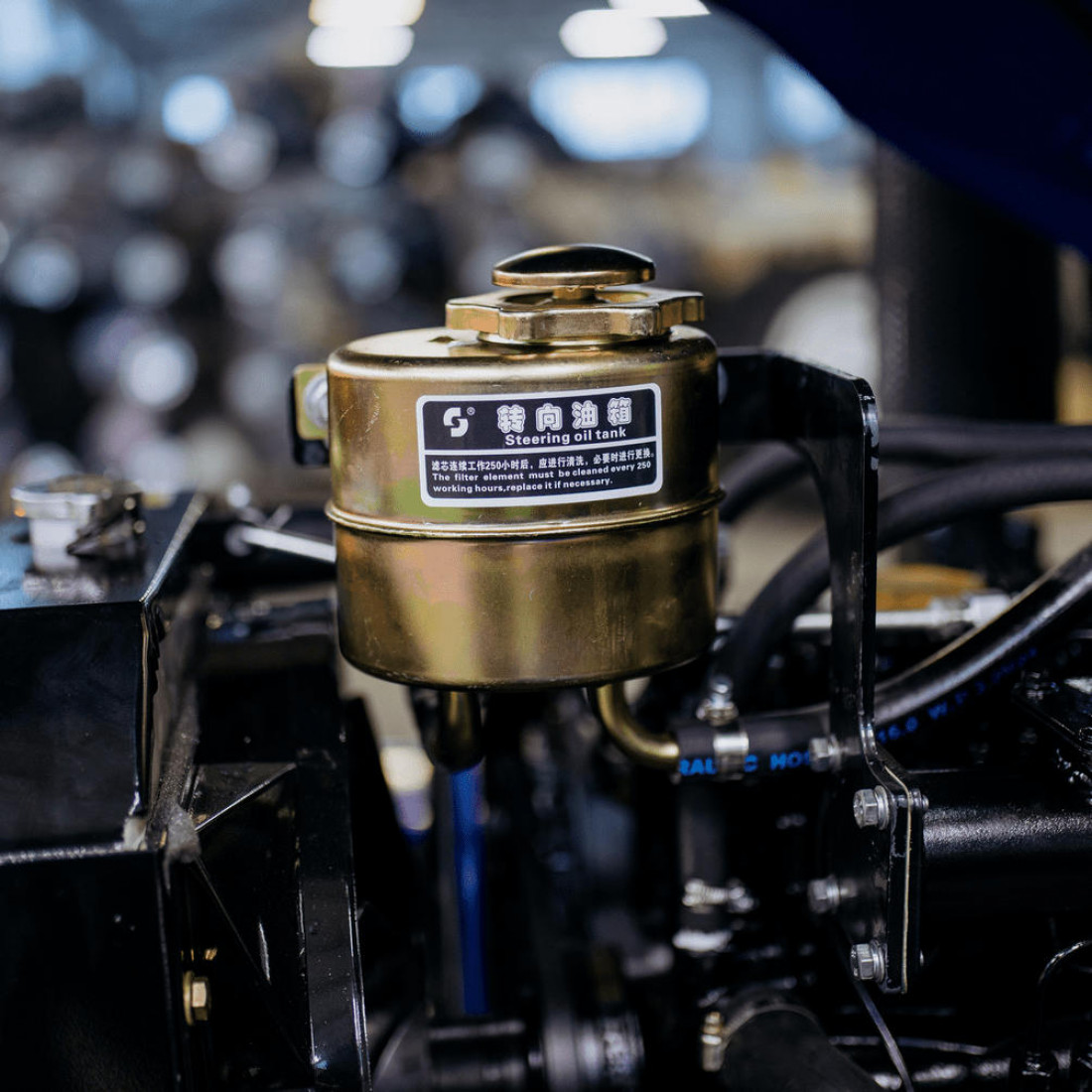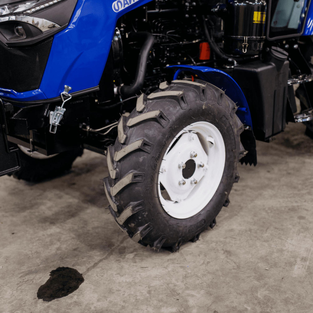 Прочное шасси с колесной формулой 4x4 обеспечивает трактору устойчивость и проходимость на любой местности. Гидроусилитель руля и продуманная конструкция делают управление легким и комфортным.