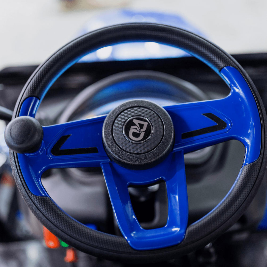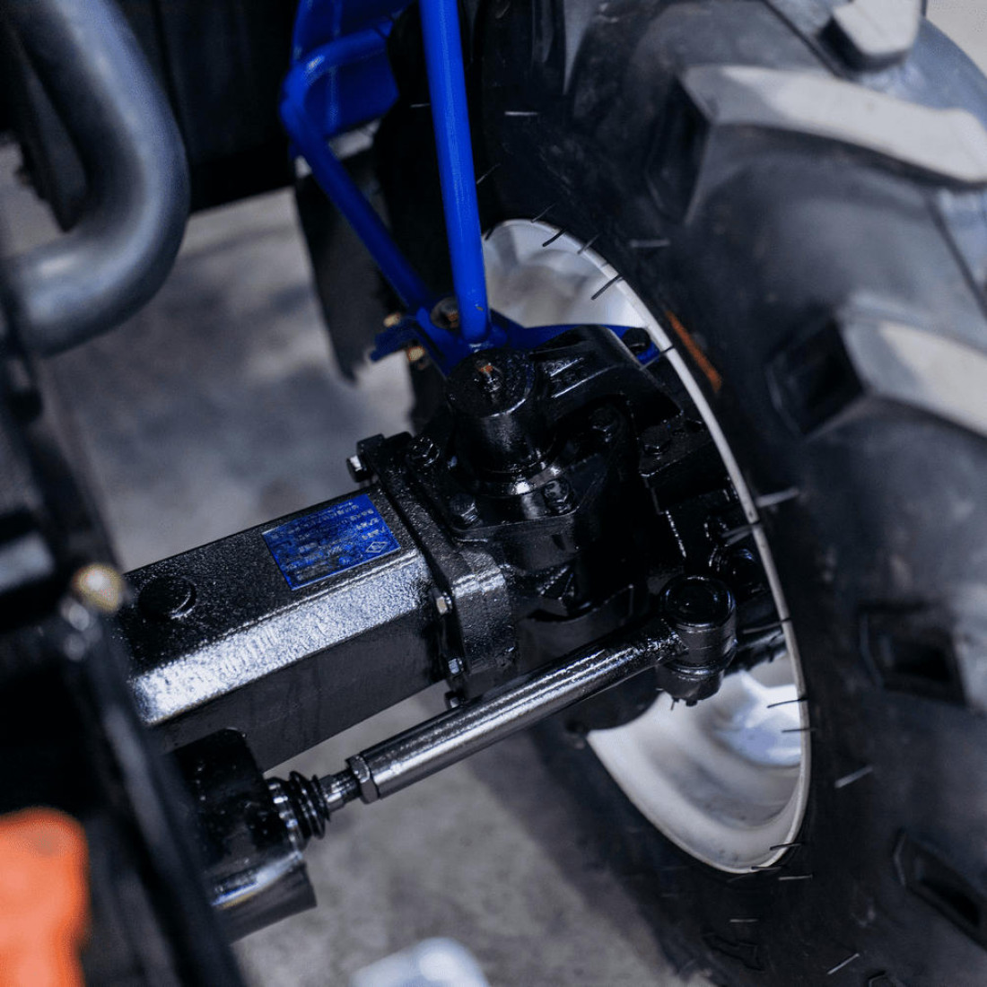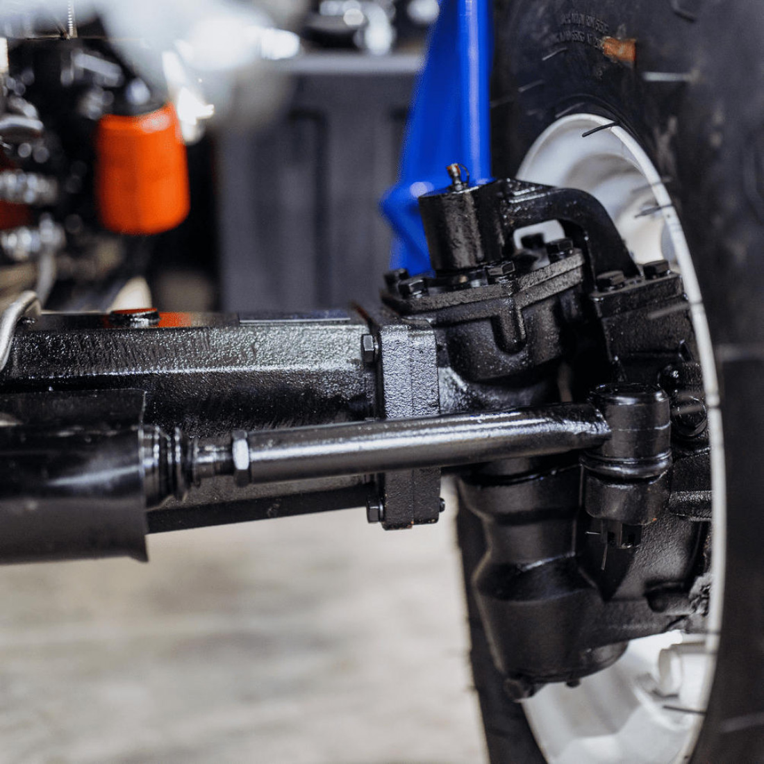 Прочное шасси с колесной формулой 4x4 обеспечивает трактору устойчивость и проходимость на любой местности. Гидроусилитель руля и продуманная конструкция делают управление легким и комфортным.