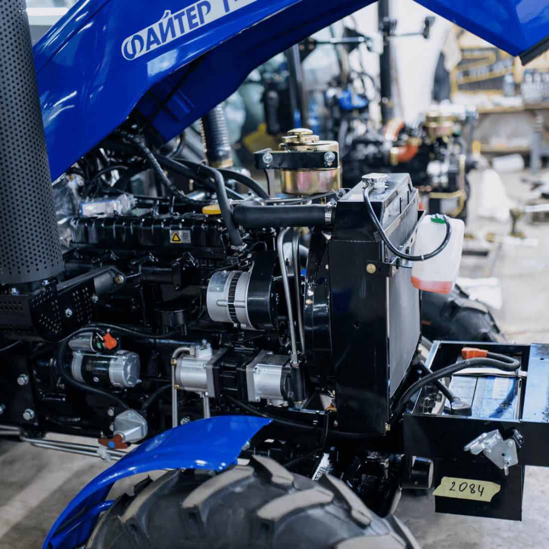 Трактор оснащен всем необходимым для работы и обслуживания прямо из коробки. От передних фар до пневматического капота - каждая деталь продумана для вашего удобства.