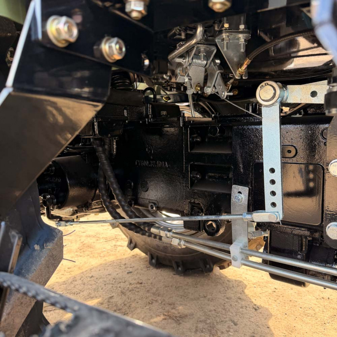 Прочное шасси с колесной формулой 4x4 обеспечивает трактору устойчивость и проходимость на любой местности. Гидроусилитель руля и продуманная конструкция делают управление легким и комфортным.