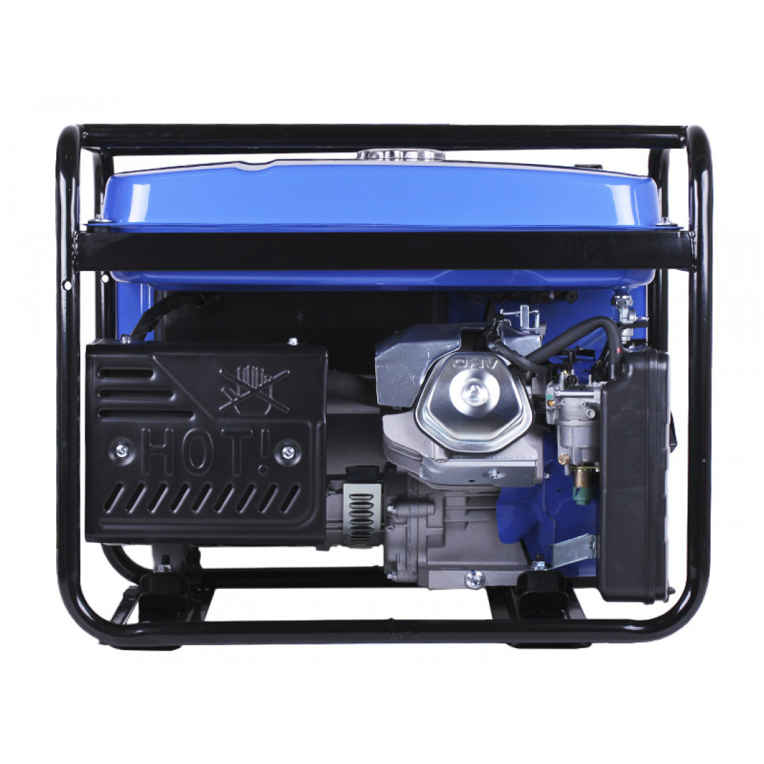 Рама корпуса прочная, что предотвращает повреждения двигателя, а удобная конструкция позволит переносить агрегат на нужное место. Благодаря наличию глушителя, генератор работает с низким уровнем шума и уменьшенной вибрацией.