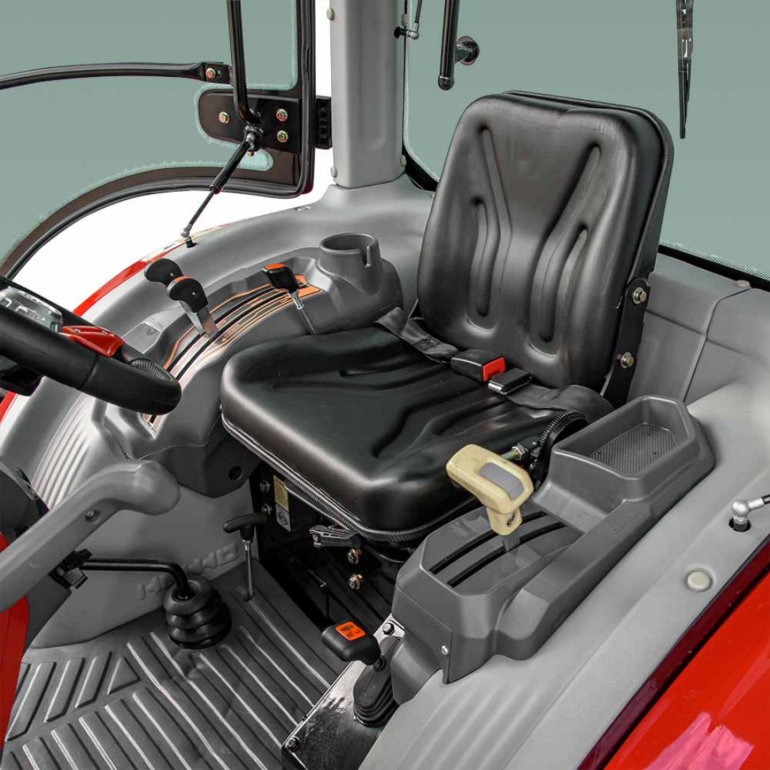 Кабина обеспечивает комфортную работу оператора в любое время года. Благодаря высокому тяговому усилию и весу в 2,3 тонны, трактор отлично справляется с тяжелой пахотой, культивацией целинных земель, посевом, а также коммунальными задачами с использованием тяжелого навесного оборудования.