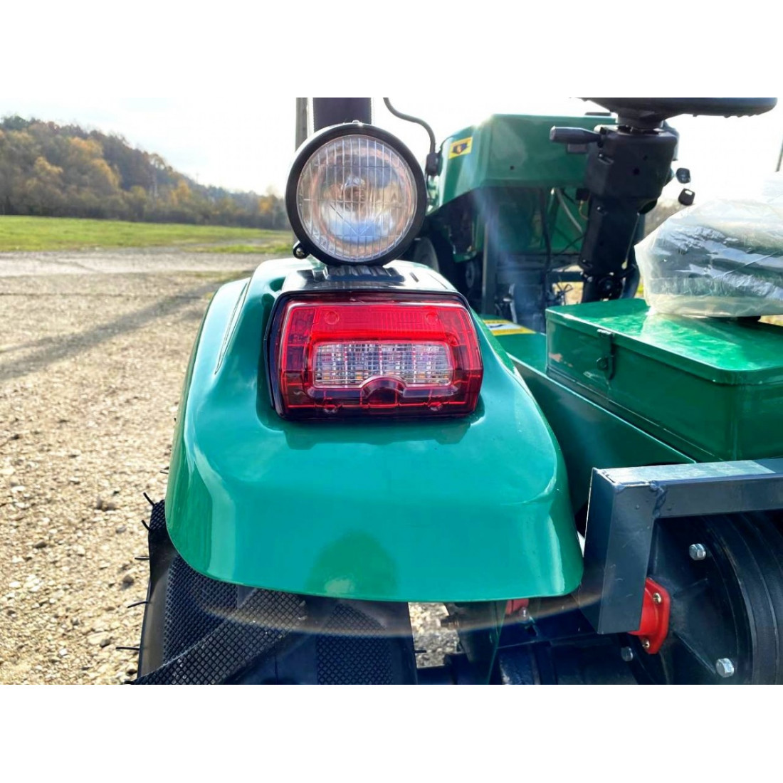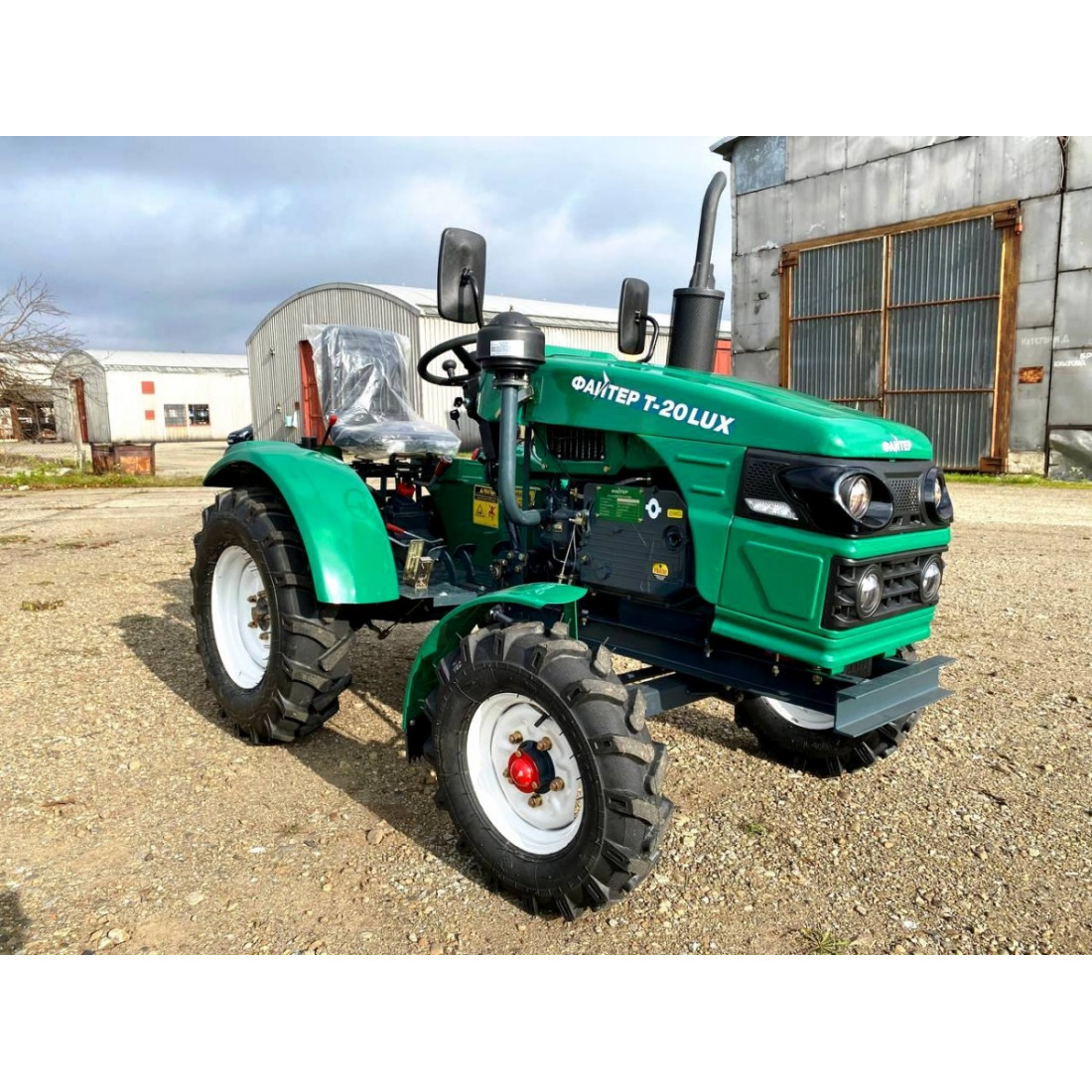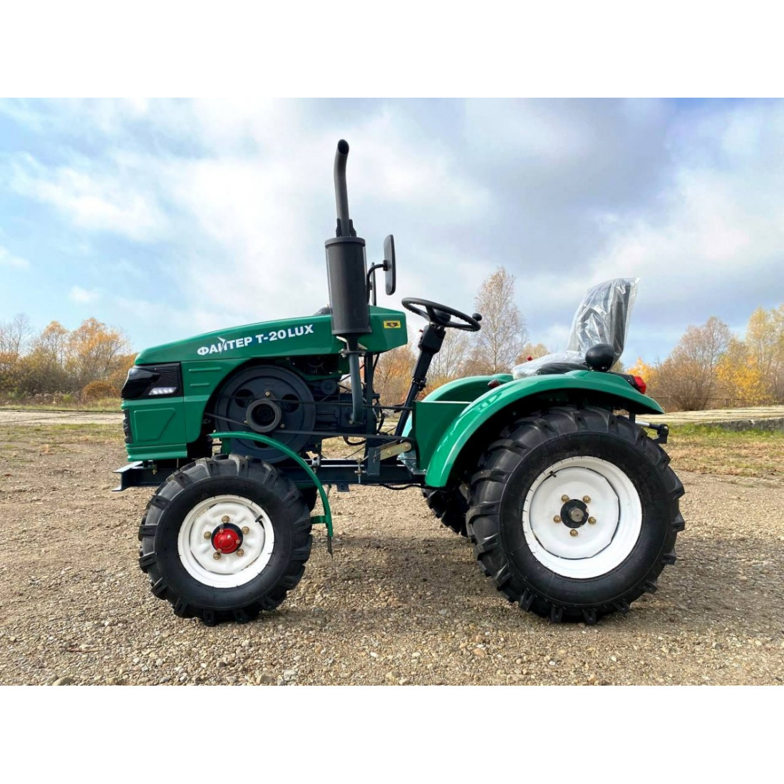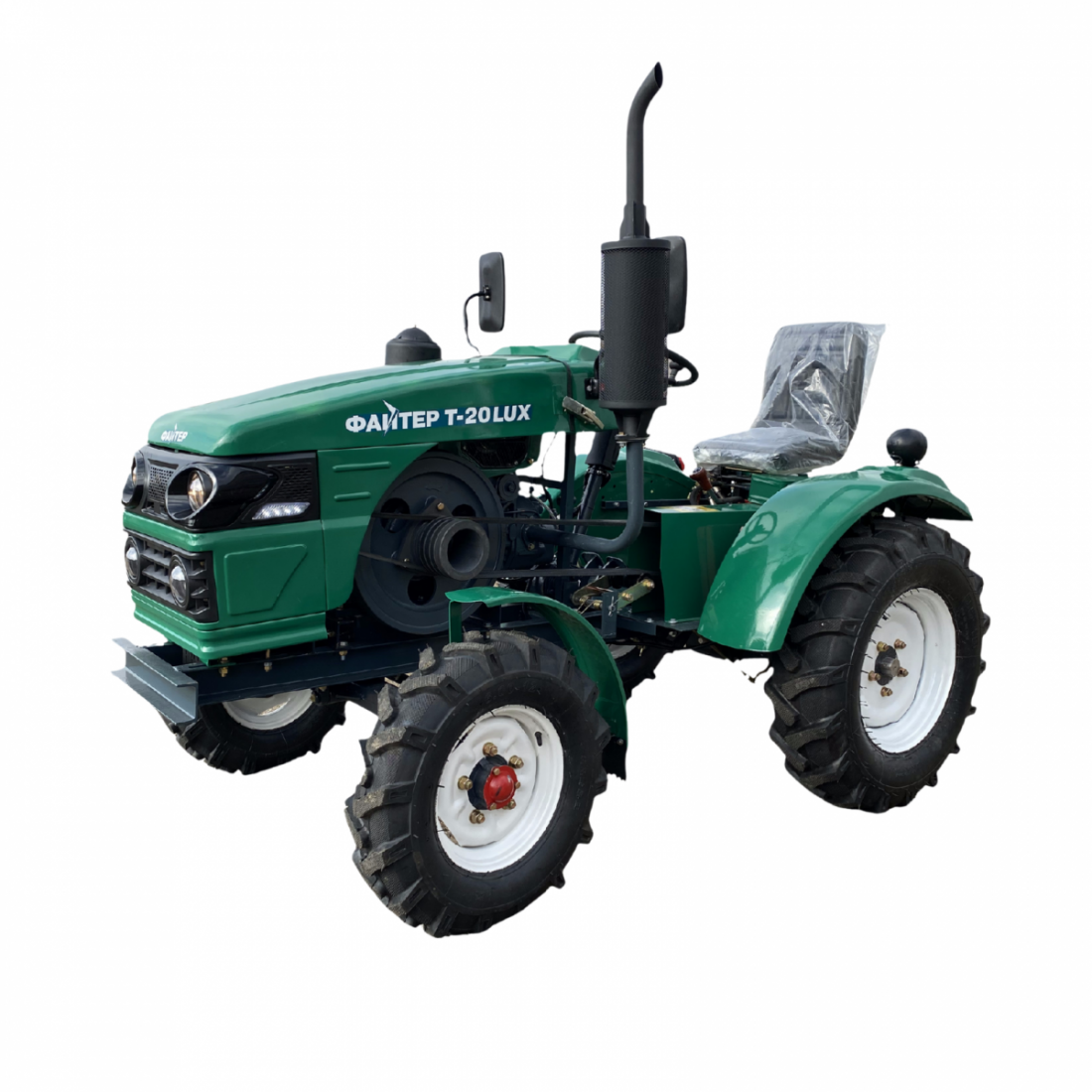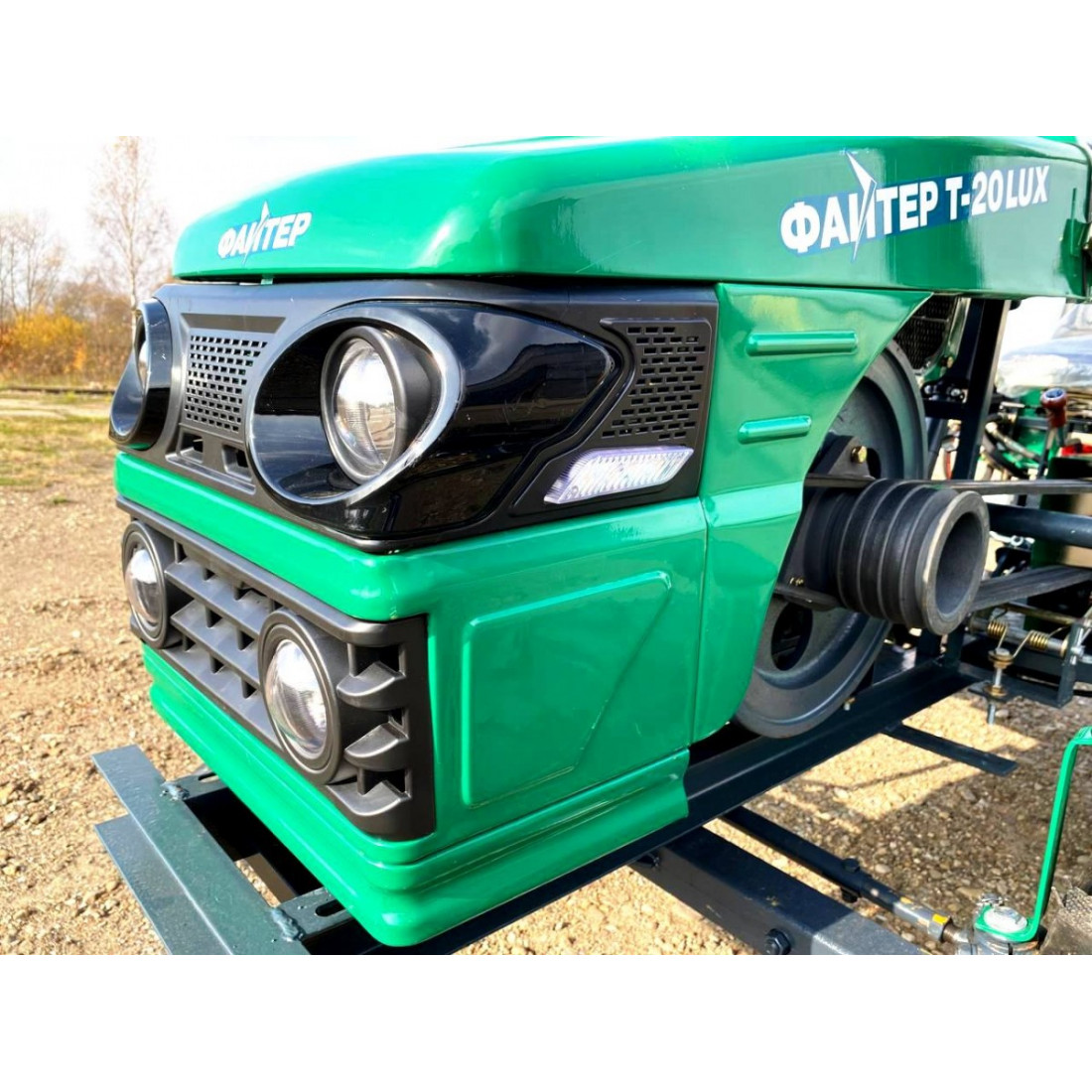 Мототрактор Файтер Т20 LUX имеет классический дизайн и все необходимое оборудование и документацию для использования техники в любое время суток, а также на дорогах общего назначения.